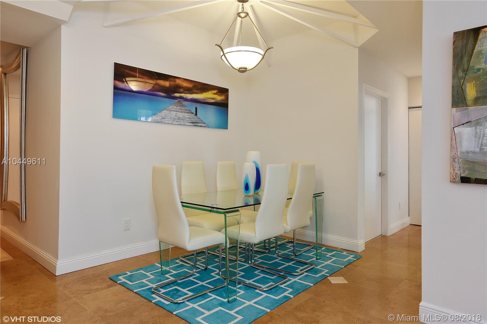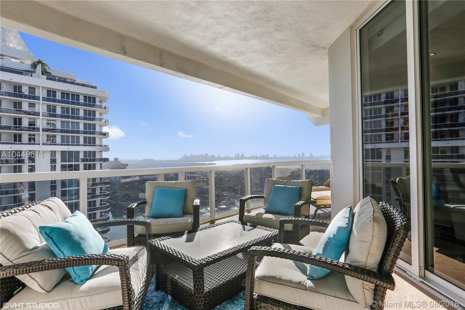 Spectacular views of the ocean, bay, intracoastal and Downtown Miami from this spacious residence with 2 bedrooms, 2 baths plus den. Beautifully remodeled. High ceilings couple with marble floors throughout for an open and airy ambiance. Floor-to-ceiling sliding glass doors in the living and dining rooms open to an expansive balcony, which overlooks the Atlantic Ocean and tropical cityscape. Expansive Master Suite with custom built walk-in closet complemented by a master bath with spa & separate shower. The den can be used as a 3rd bedroom or home office. Set upon the dazzling oceanfront, The Blue & Green Diamond include 5-star amenities, and are just minutes from SOBE, the Performing Arts Center, Downtown Miami, Miami International Airport and world-renowned Bal Harbor Shops.