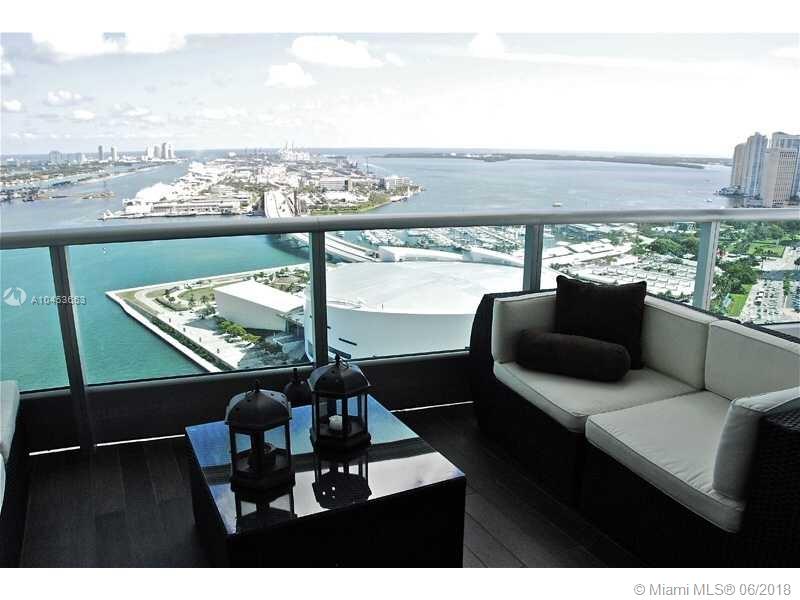 **Completely Turn-Key** Breathtaking unobstructed views from 3 separate balconies, watch the sunrise in the east and the sunset in the west! Completely furnished corner unit, 3 BDR/3.5 BA converted to a 2 BDR + Den, with open concept floor plan and floor-to-ceiling windows. Features private elevator & foyer, top of the line Miele appliances, and spacious walk-in closets with built-ins. The most sophisticated luxury condo located in the heart of Downtown Miami. Walking distance to restaurants, sporting events, concerts, museums, theater, and more.
