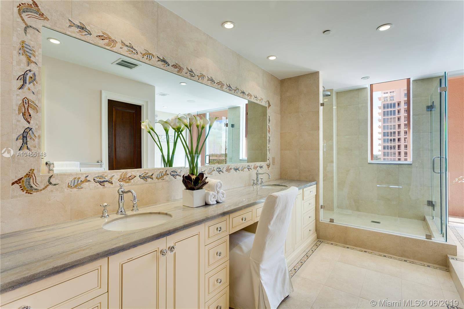 This luxurious, waterfront condominium will now be sold at Luxury AUCTION® on July 27, 2019 in cooperation with Platinum Luxury Auctions! Selling WITHOUT RESERVE! List price is FOR REFERENCE ONLY. Inquire for complete auction details. Fabulous opportunity to own at The Gables Club! Rarely available the "A" line. Enjoy spectacular panoramic bay views and 5 star lifestyle, this residence offers over 4,000 SF living area plus an additional 1,000 SF of terraces. 3 bedrooms, family room, dining room. Beautiful bookshelves and huge entertaining spaces indoor and outdoor. 5 parking spaces included with this residence.