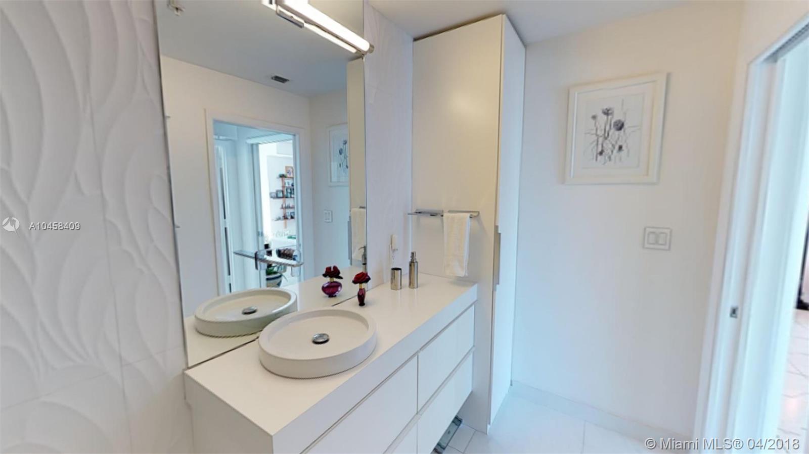 See 3D virtual tour in this listing. Master bathroom in this unit is second to none. Enjoy a steam room and massaging water jets in the privacy of your own home. Bathroom tiled walls simulate angle wings to give you a peaceful environment. Glass shower doors from top to bottom. Frosted glass pocket door installed in bathroom to give you natural light and definitely more space. Guest bathroom has also been upgraded structurally to allow for a closet to be installed and glass sliding doors. Custom wall-in closet, remote controlled shade/blackout. Great view to the city and Biscayne Bay. Very nice community, two pools, best gym in the area, sauna, theater, elegant party rooms, pool tables, and volleyball/tennis/basketball courts across at Margaret Pace Park. Spacious storage on the same floor