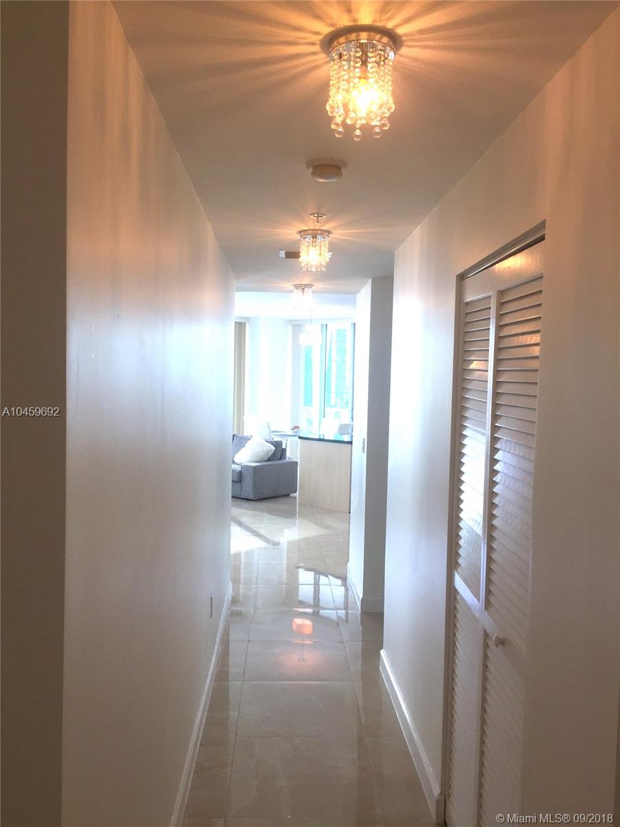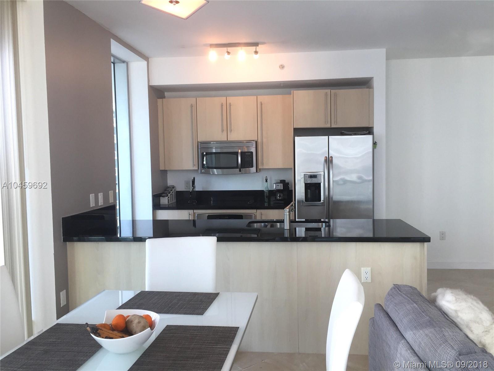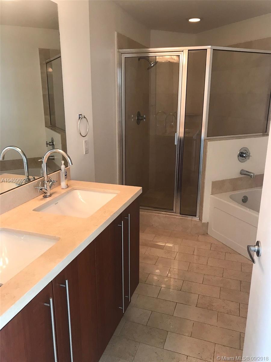 Impeccable SE corner unit with open floor plan and wraparound balcony. Living area with floor to ceiling hurricane impact glass on east and south side offering spectacular views. The modern kitchen offers stainless steel appliances and granite counters. Two spacious bedrooms with two full bathrooms and access to the balcony. Master bedroom with walk-in closet, separate tub and shower and double sink. This unit has beautiful porcelain tile throughout, new modern lighting and washer/dryer in the unit.