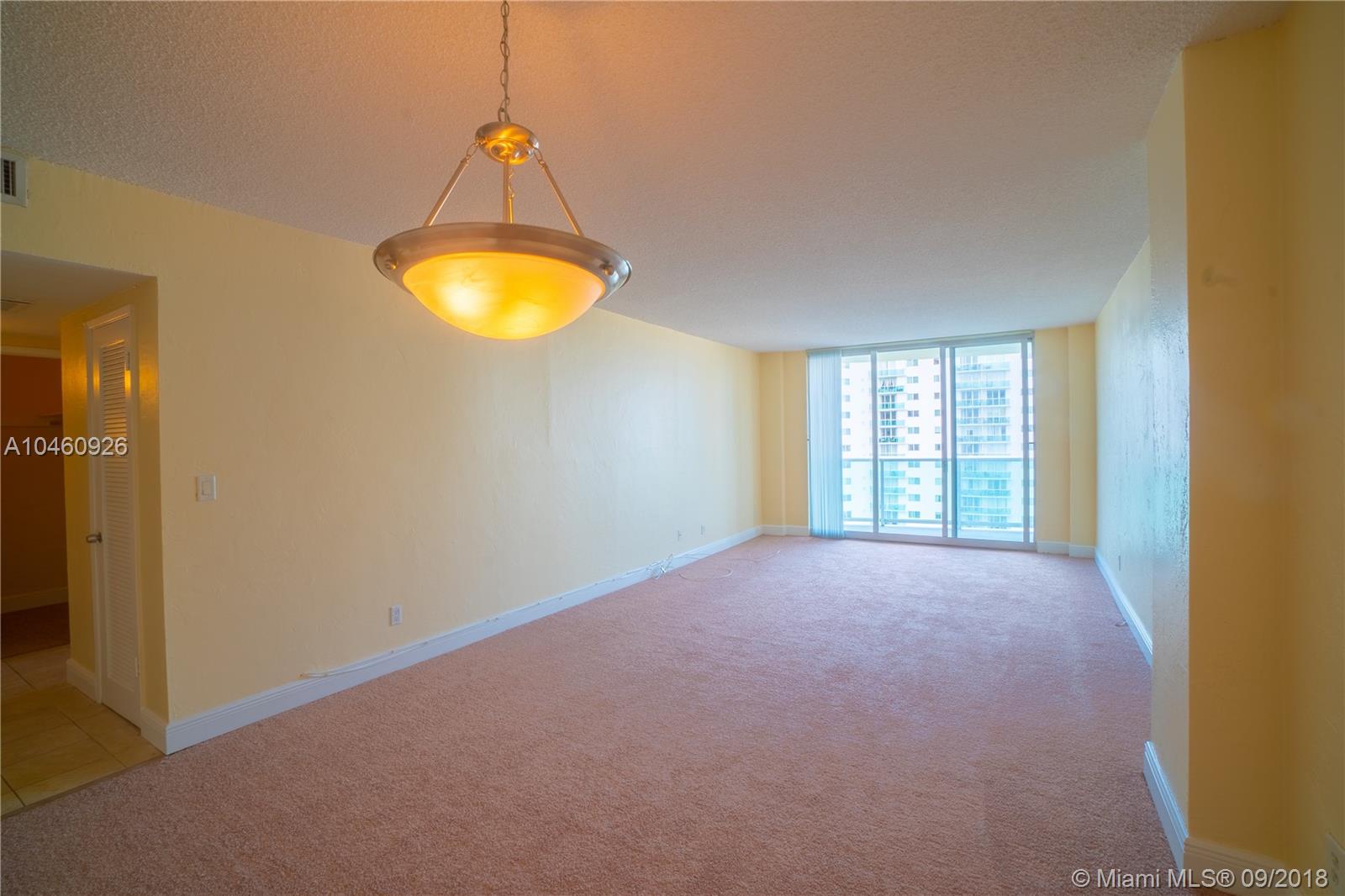 REDUCED FOR A QUICK SALE. SPACIOUS, 1 BED 1 BATH UNIT WITH OUTSTANDING OCEAN & CITY VIEW. APARTMENT FEATURES CARPET FLOORING, OPEN KITCHEN, MASTER BED WITH TWO WALKING CLOSETS (COULD BE TRANSFORMED INTO OFFICE OR LARGER BED)NEW APPLIANCES, & MORE. BUILDING OFFERS: LARGE SWIMMING POOL, FITNESS CENTER, TENNIS COURTS, BBQ AREA & CAFE. 24-HOUR VALET & CONCIERGE SERVICE. PET FRIENDLY BUILDING ACROSS THE STREET FROM THE BEACH. CLOSE TO MAJOR HIGHWAYS, AIRPORTS, AVENTURA MALL, WALKING DISTANCE FROM SHOPS AND RESTAURANTS.