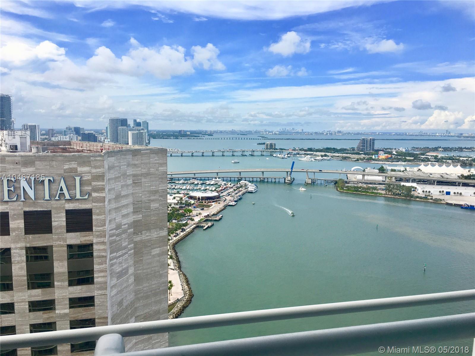 DIRECT BAY VIEWS 40 STORIES ABOVE DOWNTOWN MIAMI. ENJOY A COMMANDING VIEW OF THE CRUISE SHIPS AND THE SKYLINE LIGHTS UP BEAUTIFULLY IN THE EVENINGS. ONE OF THE MOST SOUGHT AFTER WATERFRONT LOCATIONS ON ALL OF MIAMI. ONE MIAMI CONDO IS SURROUNDED BY A WATERFRONT BAYWALK ADORNED WITH ART INSTALLATIONS THAT IS PERFECT FOR A MORNING JOG OR AN EVENING STROLL. FULL SERVICE RESORT STYLE AMENITIES INCLUDE 2 POOLS, FITNESS CENTER, 24 HOUR VALET AND MORE. THIS SPACIOUS ONE BEDROOM BOASTS 24 X 24 PORCELAIN TILE THROUGHOUT AND THE NORTH FACING BALCONY SEES OVER THE INTERCONTINENTAL HOTEL ONTO BAYFRONT PARK AND MIAMI BEACH.