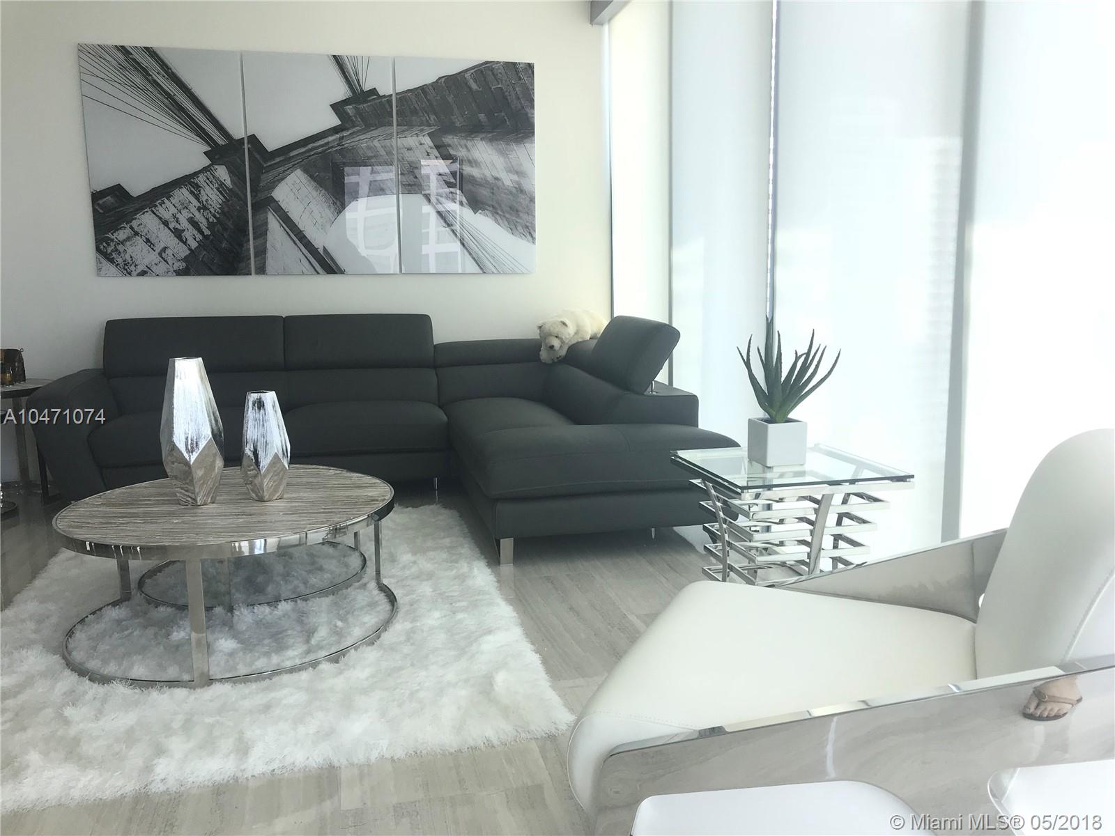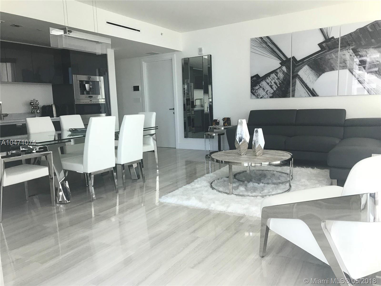 This unit sits on the 19th floor in the desireable 03 Line. It features 2Beds + 2 Full Baths & 1 Half bath and is beautifully furnished. It is ready to move in! Features the IHOME tech. that controls AC, electric blinds, audio, lights and valet parking. The kitchen showcases Italian glass cabinetry, built-in wine cooler, Expresso machine& top of the line appliances. This unique building has state of the art amenities, including an infinity edge pool, dry-cleaning, pet services, 5-mile radius chauffeur, complimentary bikes, and a fitness room with views of the city.This unit comes with 2 parking spaces!