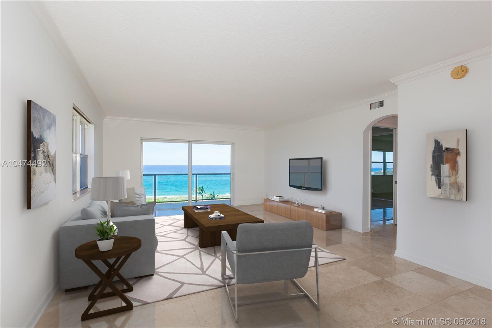 Gorgeous oceanfront condominium with luxury finishes throughout. Step into the foyer entryway of this home greeted by marble floors, crown molding, and a spectacular direct oceanfront view. Impact glass features throughout the home and balcony unite the outside with the interior of this home. Blue skies, waterviews and tropical landscaping surround you. A modern open floorplan with a designer kitchen and plenty of natural light await you..this home is a rare find and ready for it's new owner!