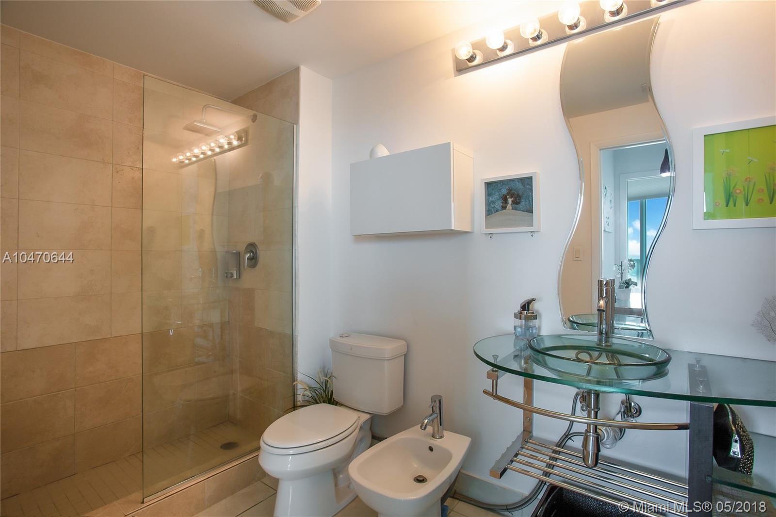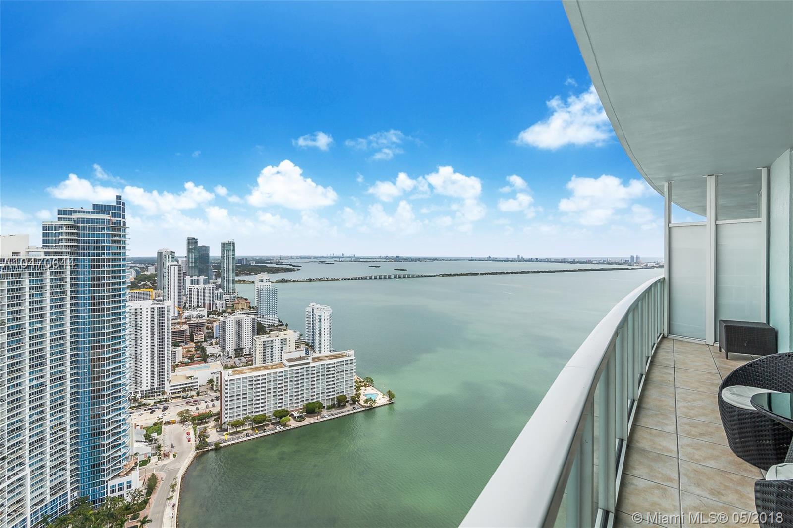 A large 1+den residence available for immediate occupancy, on a high 45th floor with stunning unobstructed views of Biscayne Bay and Miami Beach. The den is used as a second (guest or kids) bedroom or office. Fully remodeled chic unit with white-off contemporary flooring, spacious gourmet kitchen with island and modern touches throughout. Luxury amenities: 24h concierge, valet, convenience store, spa/hair salon, pool, jacuzzi, fitness center, saunas, movie theater and more. Short drive to Brickell, Wynwood, Design District shops and South Beach. Call today!