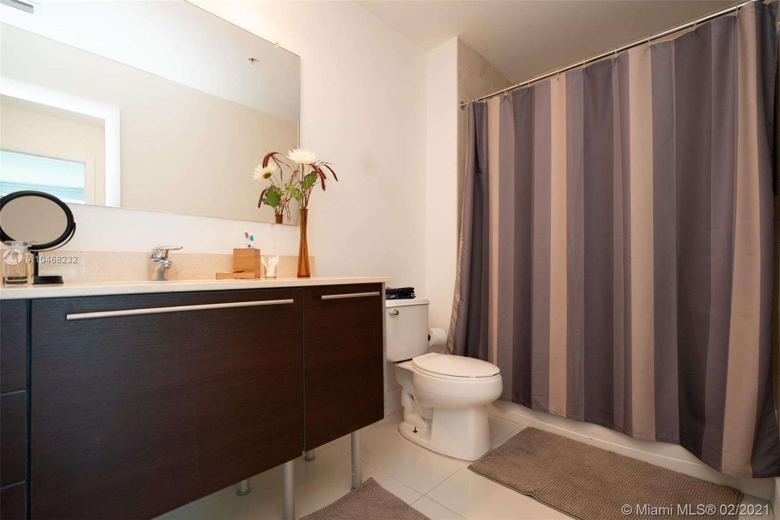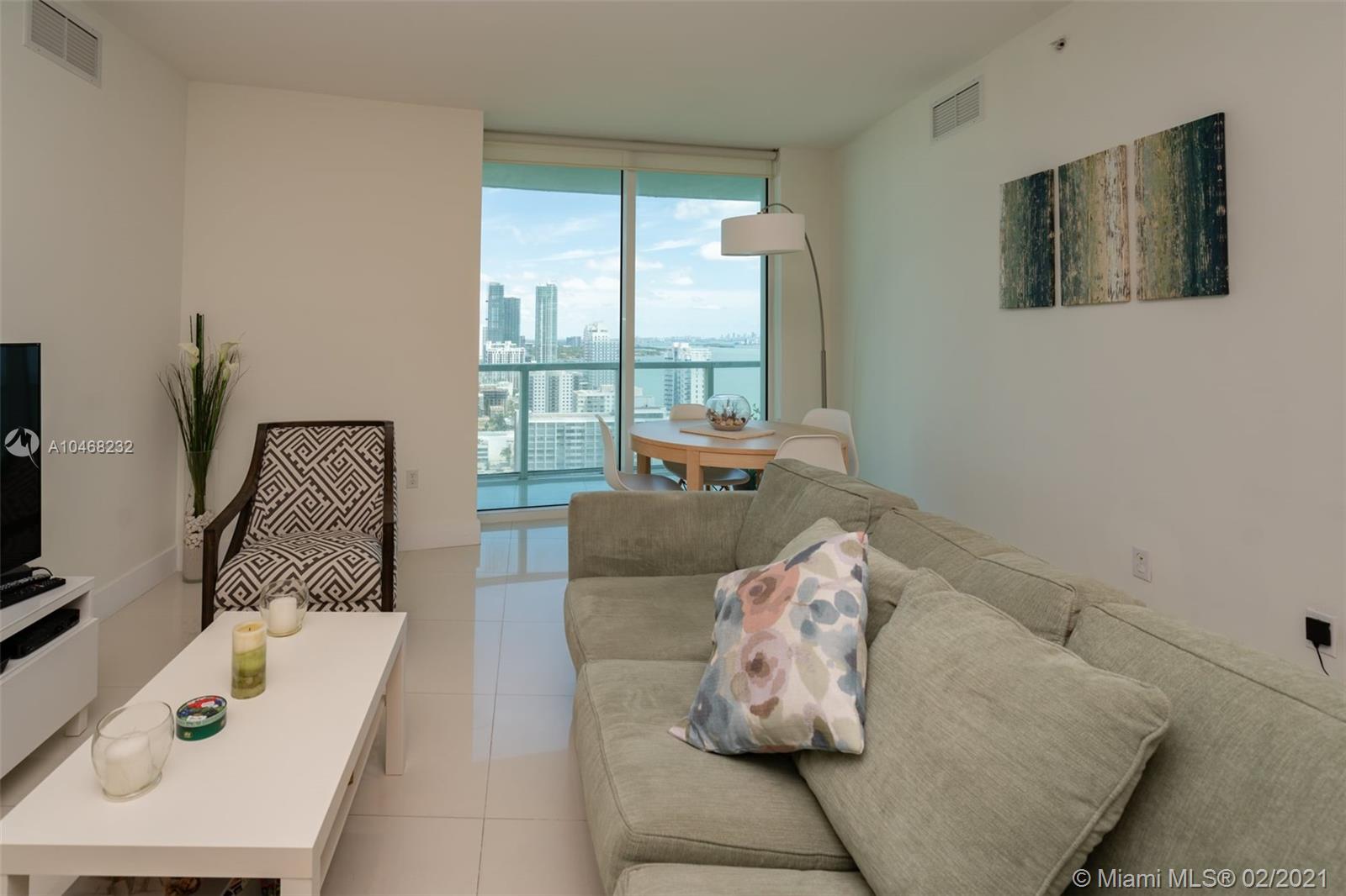 2 bedroom 2 bath Split floorplan. Great views of bay and city. Upgraded Porcelain tile throughout unit and balcony. Lots of closet space and spacious kitchen. Balcony runs length of unit is very roomy. Building has fantastic amenities including 2 pools, incredible gym, sauna, numerous public spaces to unwind and or hold events. Easy commute to Airport, Beaches, Brickell, Downtown, Wynwood and much more. 2 supermarkets are walking distance and lots of great eateries in the area.