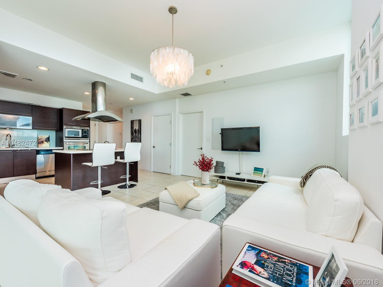 Fully furnished,turn-key gorgeous corner 2/2 in the best line of the building. High floor offering amazing water and city views. Bright and spacious condo. Waterfront building featuring contemporary architecture. Amenities included 24-hr concierge, marina, pool, gym, Tennis and basketball court. European cabinetry, porcelain flooring throughout, granite countertops and stainless steel appliances. Easy to Show. See virtual tour. (excluding artwork)