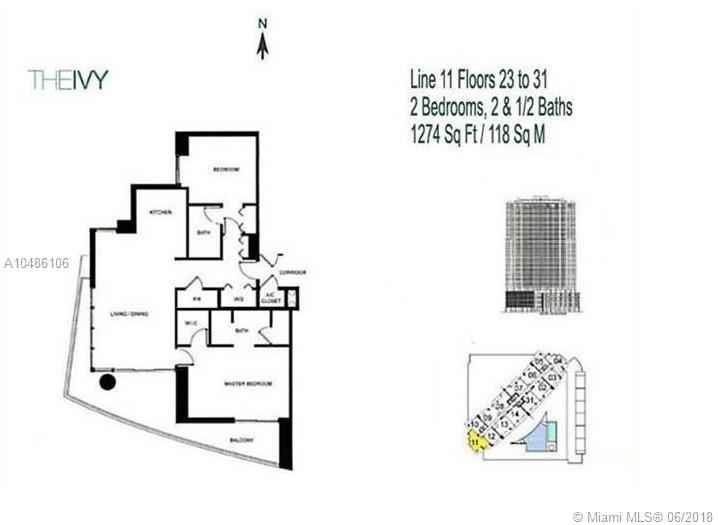 Beautiful large 2 Bedroom 2.5 Bathrooms, split floor plan unit at the Ivy at riverfront with river and ocean views, ceramic title. Most desirable line in the building. Located near Brickell City Center. Great amenities Gym, Spa, valet, 24 hrs security. Contact listing agent for showing instructions.