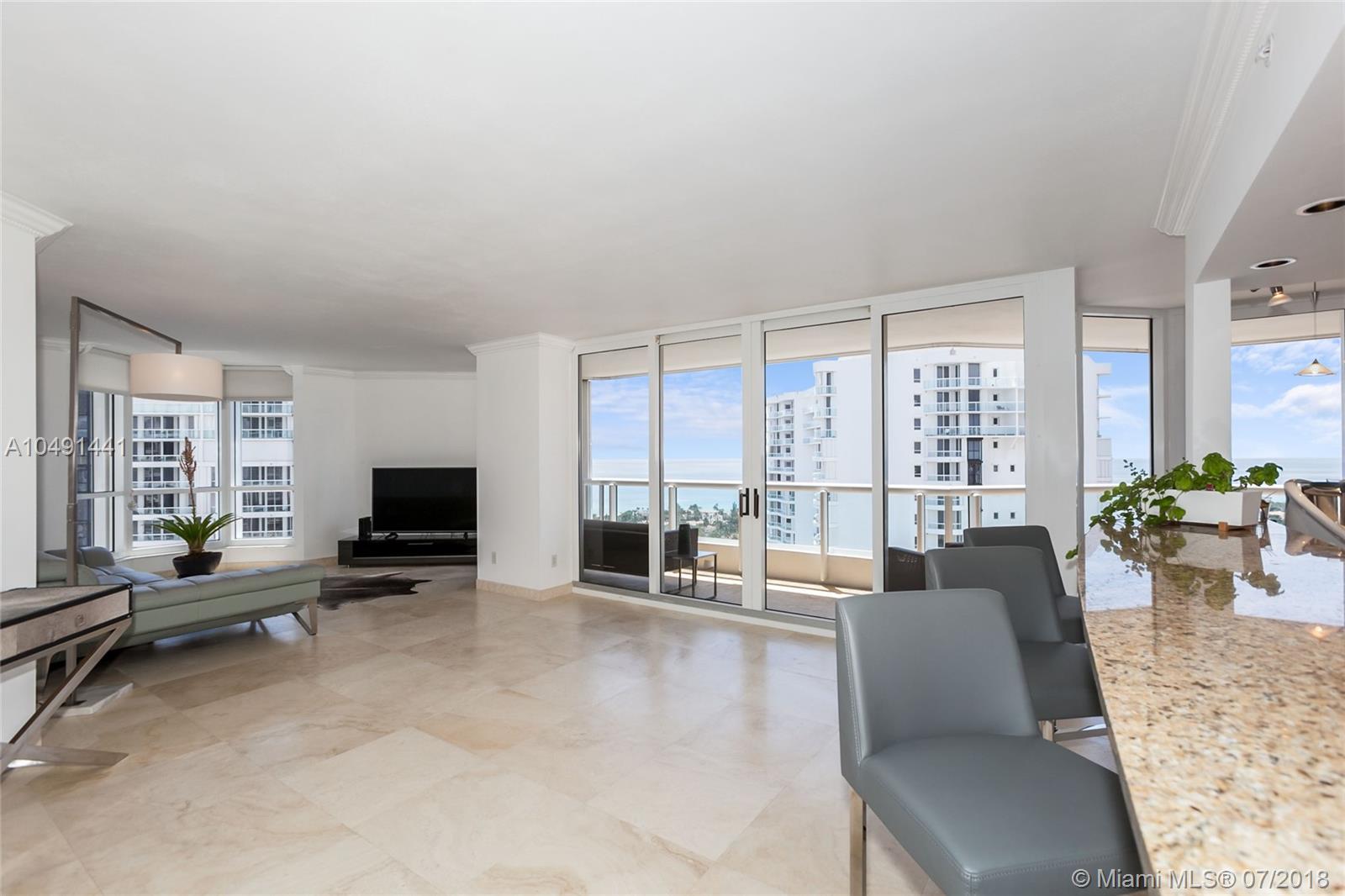 Corner unit, high floor, panoramic views and priced to sell. Tastefully upgraded, open kitchen, top of the line appliances, 24 X 24 marble throughout. Bright & spacious 2 bedrooms + den, vibrant views from floor to ceiling windows and filled with sunlight. Panoramic ocean, city and intracoastal views. Second bedroom large enough for two queen beds. Walk-in closets. Two balconies. Frameless Euro glass in bathrooms. Hurricane shutters. A pleasure to see. Premium parking space. Walking distance to Marina of the Waterways. Resort style spa included in the maintenance, sauna, tennis courts, pool, BBQ areas, library and party room. 3 attended heated pools, 4 clay tennis courts.