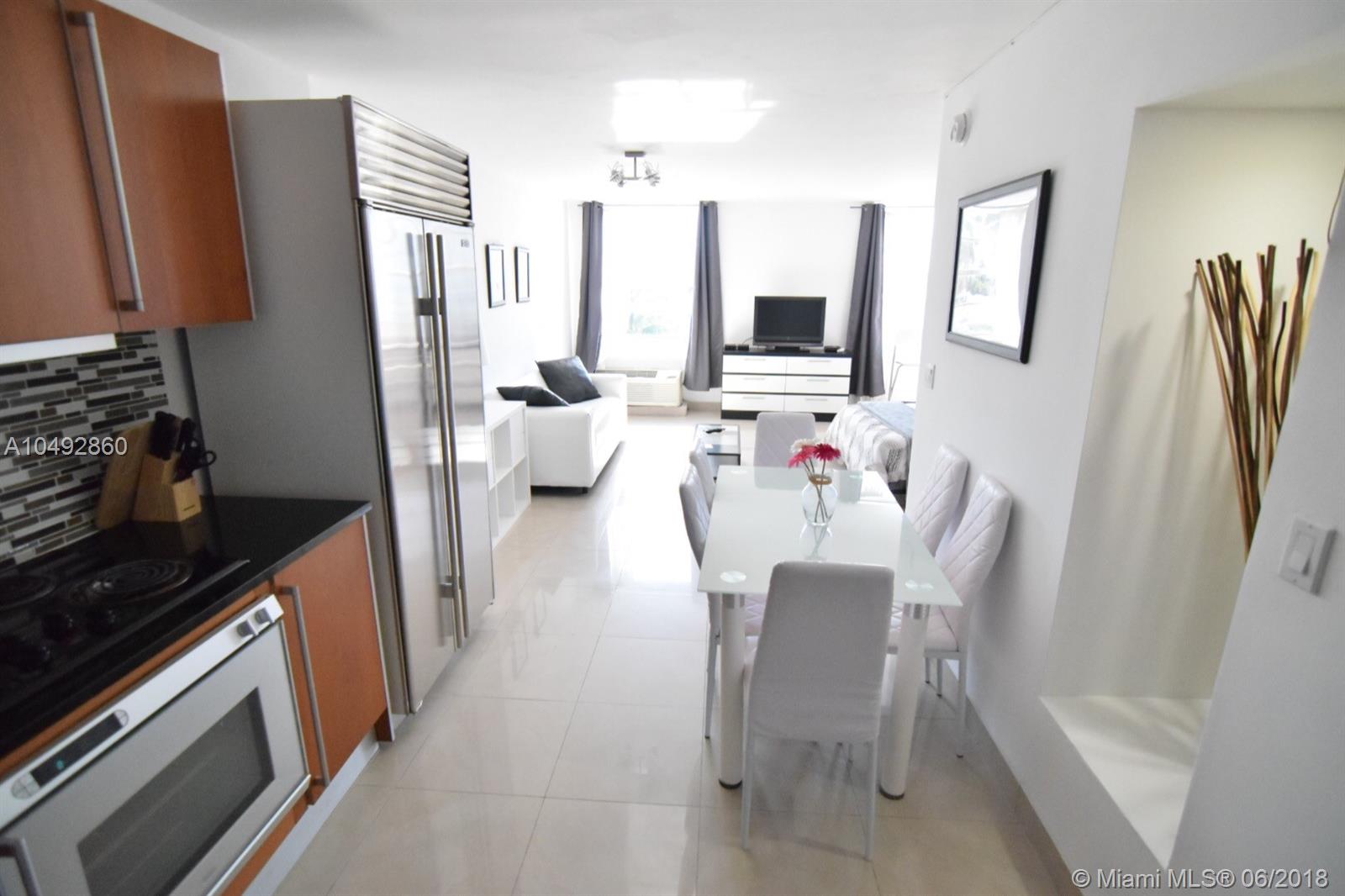 Spacious furnished and remodeled turnkey Studio, updated kitchen with subzero refrigerator, granite countertops, stainless steel appliances, remodeled bathroom, newly tiled floors. Centrally located on Washington Ave just steps away from shopping, clubs, bars, dining, and a great cafe/deli downstairs to enjoy the atmosphere. Beach is 2 blocks away!