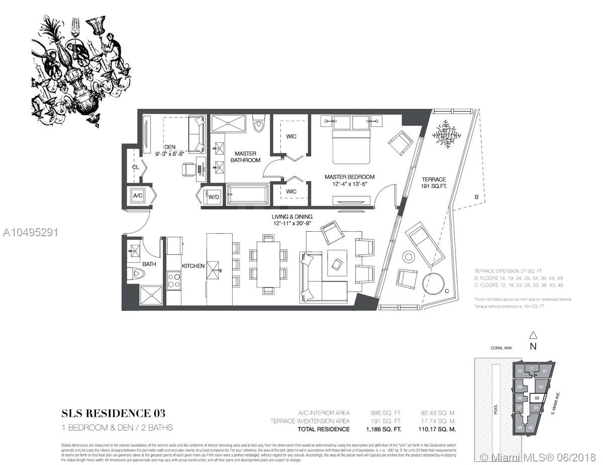 Beautiful Luxurious! 1 Bed + Den with 2 full Bath apt. in the SLS Brickell. Impeccable decoration with Italian porcelain floors, custom closets, window treatment and decorative glass door at the entrance. Open Concept Kitchen. Large capacity stackable washer and dryer. Relax in your balcony with the Captivating (east) partial views of the Miami Bay, Atlantic Ocean and Brickell Skyline. 9th floor heated altitude pool deck with 200 foot long. One assigned parking space, for more cars you can use valet. Crossing the Street you are close to shoppings, schools, restaurants and more. * Furniture is for sale (ask for prices). You found the less expensive unit on line 03 in the Building. DO NOT miss out this Investment Opportunity!