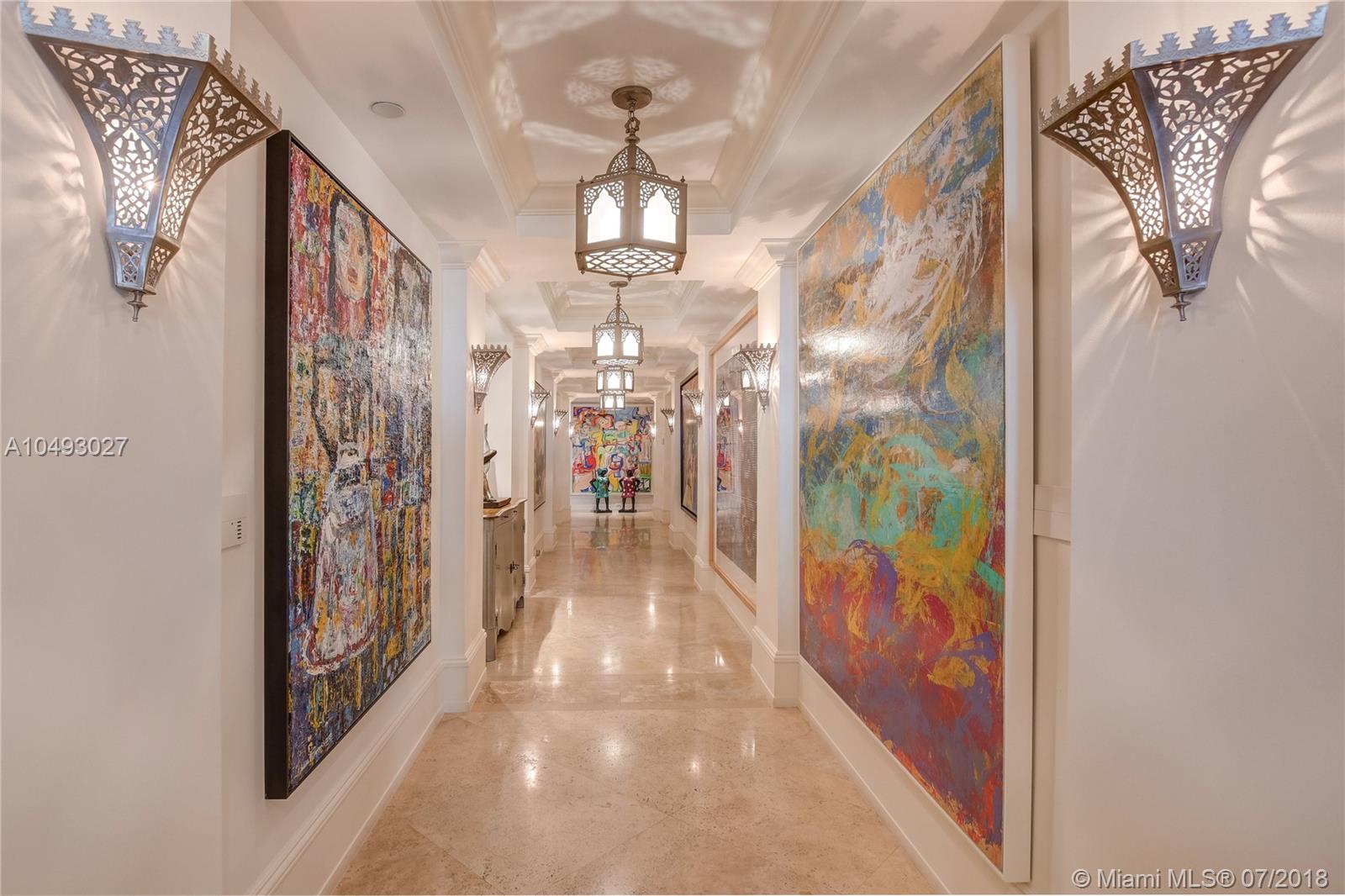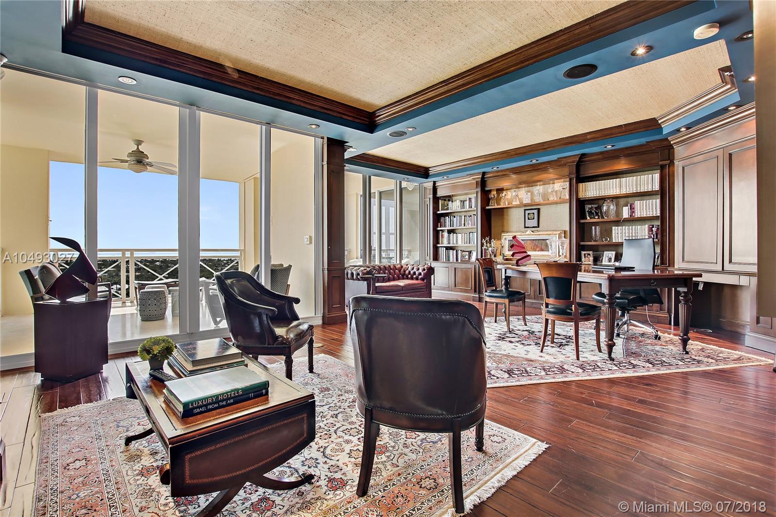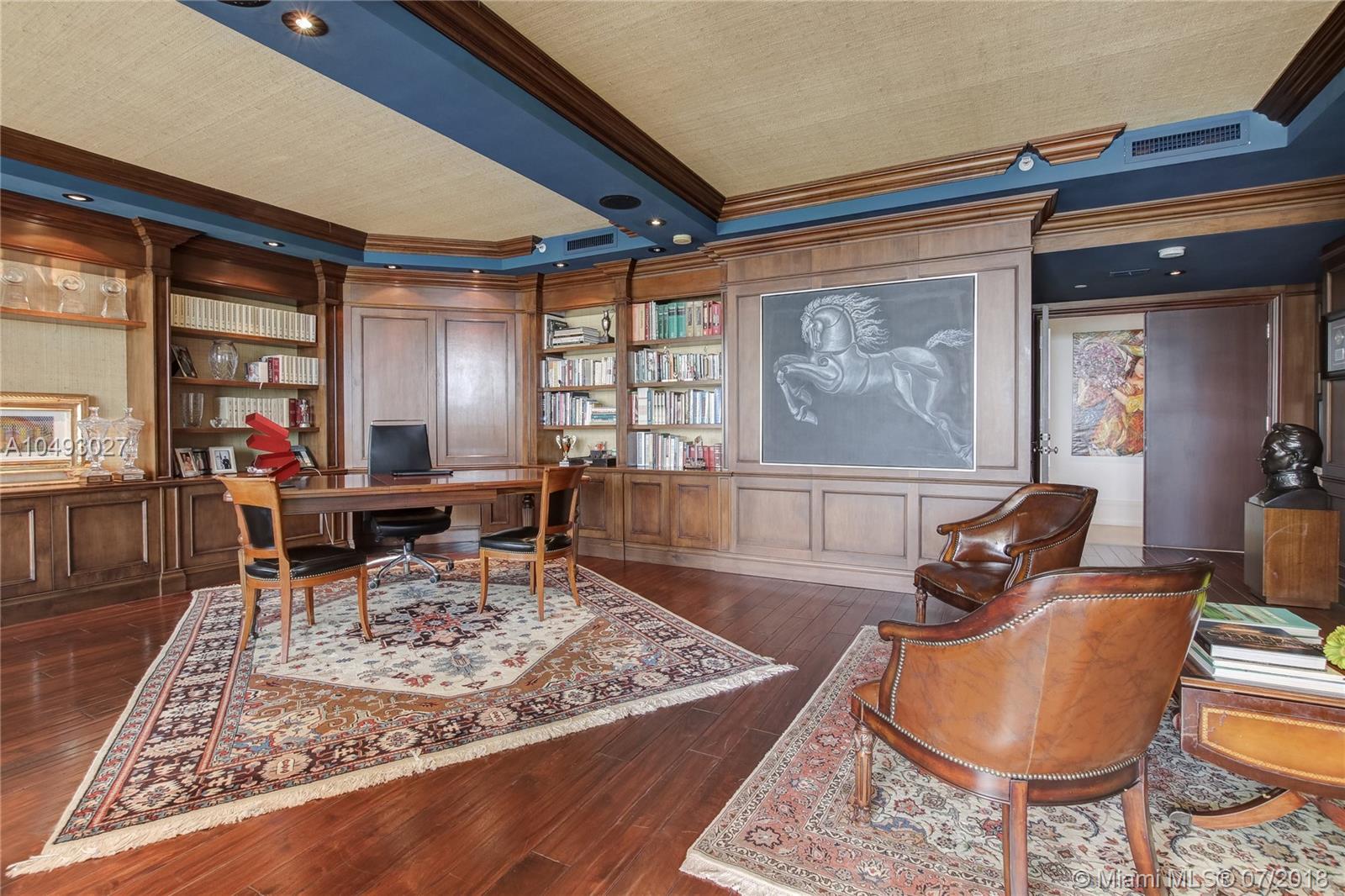 Presenting one of Grand Bay community’s largest luxury units with views of the Ocean and Bay. Just imagine 5634 int. SF, 5 bed, 4.5 baths, and beautiful terraces. A private elevator opens to the double size living room. An art lovers dream! Hector-Hector chef’s kitchen has center island breakfast bar, custom Chippendale cabinetry, top shelf appliances, three ovens and a wine fridge! Dinner can be served in the dining room next to the rustic Library, serving wine from the temperature controlled 1,100 bottle wine room. After a movie in the theater, retire to the Master suite with spacious walk-in closet, spa-like bath, for a soak in the tub. Draw the motorized shades, and enjoy the smart home entertainment system. Includes 2 parking spots, storage, and a 245 SF studio (1/1) on the 1st floor.