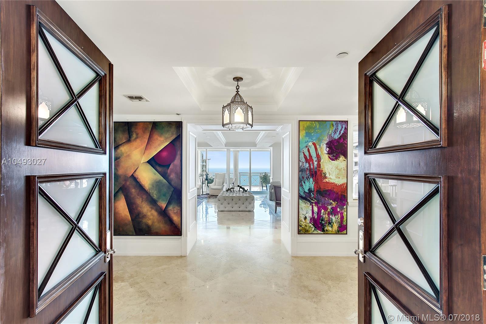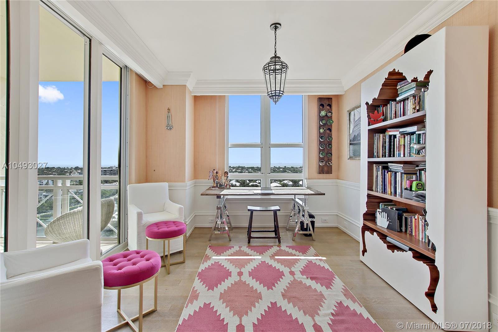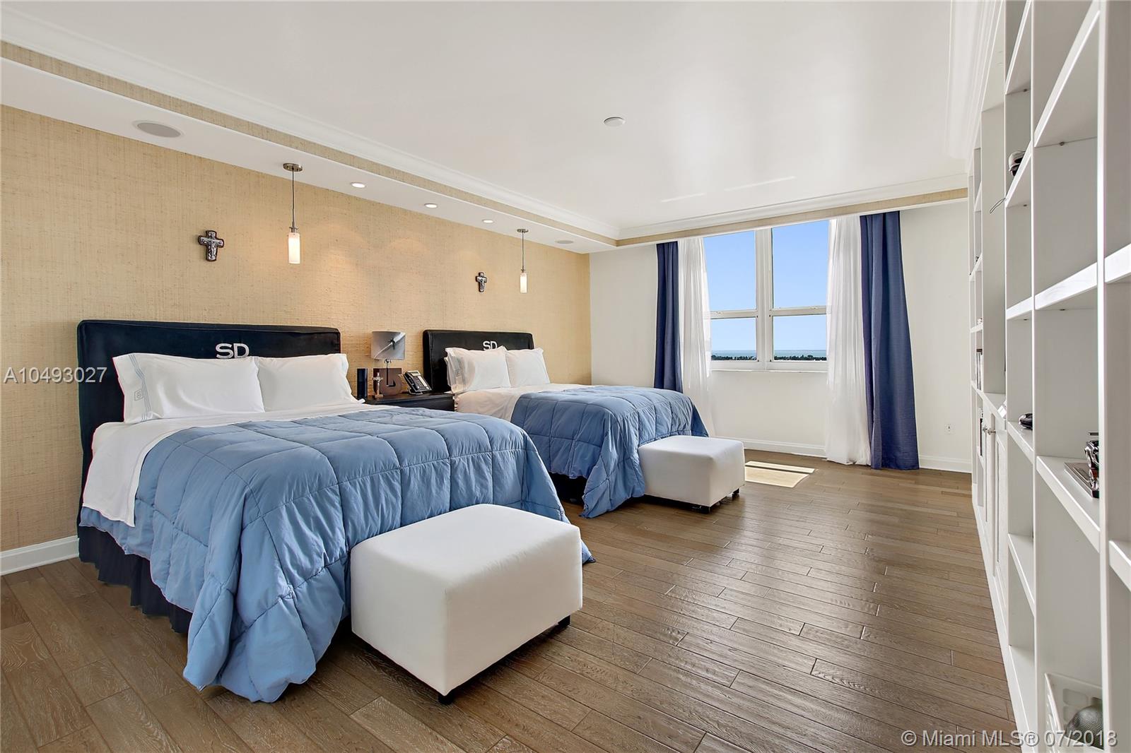 Presenting one of Grand Bay community’s largest luxury units with views of the Ocean and Bay. Just imagine 5634 int. SF, 5 bed, 4.5 baths, and beautiful terraces. A private elevator opens to the double size living room. An art lovers dream! Hector-Hector chef’s kitchen has center island breakfast bar, custom Chippendale cabinetry, top shelf appliances, three ovens and a wine fridge! Dinner can be served in the dining room next to the rustic Library, serving wine from the temperature controlled 1,100 bottle wine room. After a movie in the theater, retire to the Master suite with spacious walk-in closet, spa-like bath, for a soak in the tub. Draw the motorized shades, and enjoy the smart home entertainment system. Includes 2 parking spots, storage, and a 245 SF studio (1/1) on the 1st floor.