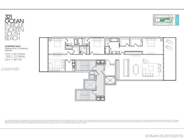 This 3/3.5+Den flow-thru unit is accessed via a private elevator lobby. Floor to ceiling windows, stunning 10 ft deep terraces w/direct ocean views. Open gourmet kitchen w/sleek Poggenpohl cabinets, Gaggenau & Sub-Zero appliances. Wood floors throughout. Signature amenities include beachfront infinity pool, library/lounge, fitness center, beach service, 24 hour valet, concierge and security. Architect: Enrique Norton. Combine w/unit 400 for 6000+sq ft.