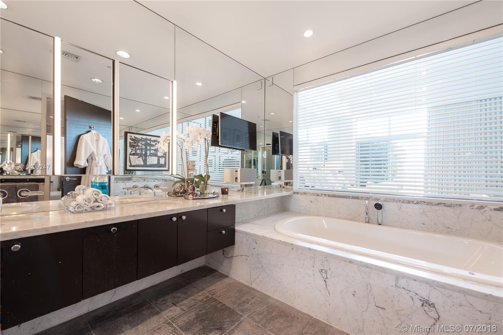 Enjoy luxury living in this beautifully designed loft with phenomenal floor to ceiling windows. This contemporary oasis offers true indoor/outdoor living with a 5,000+ sqft expansive outdoor terrace. This 3bed/2+1 bath modern loft features a bright and open layout with limestone floors throughout. The eat- in kitchen features custom Bulthaup cabinetry, Subzero refrigerator, Gaggenau cooktop, Uline wine cooler & Thermador double oven. Unwind in the spacious master suite complete with large walk-in closet and luxurious master bath with soaking tub and dual vanity. Experience living at the exclusive, guard gated Aqua Island, which offers two pools, spa and 6,000 sqft fitness center, concierge, 24 hour valet and access to private docks.