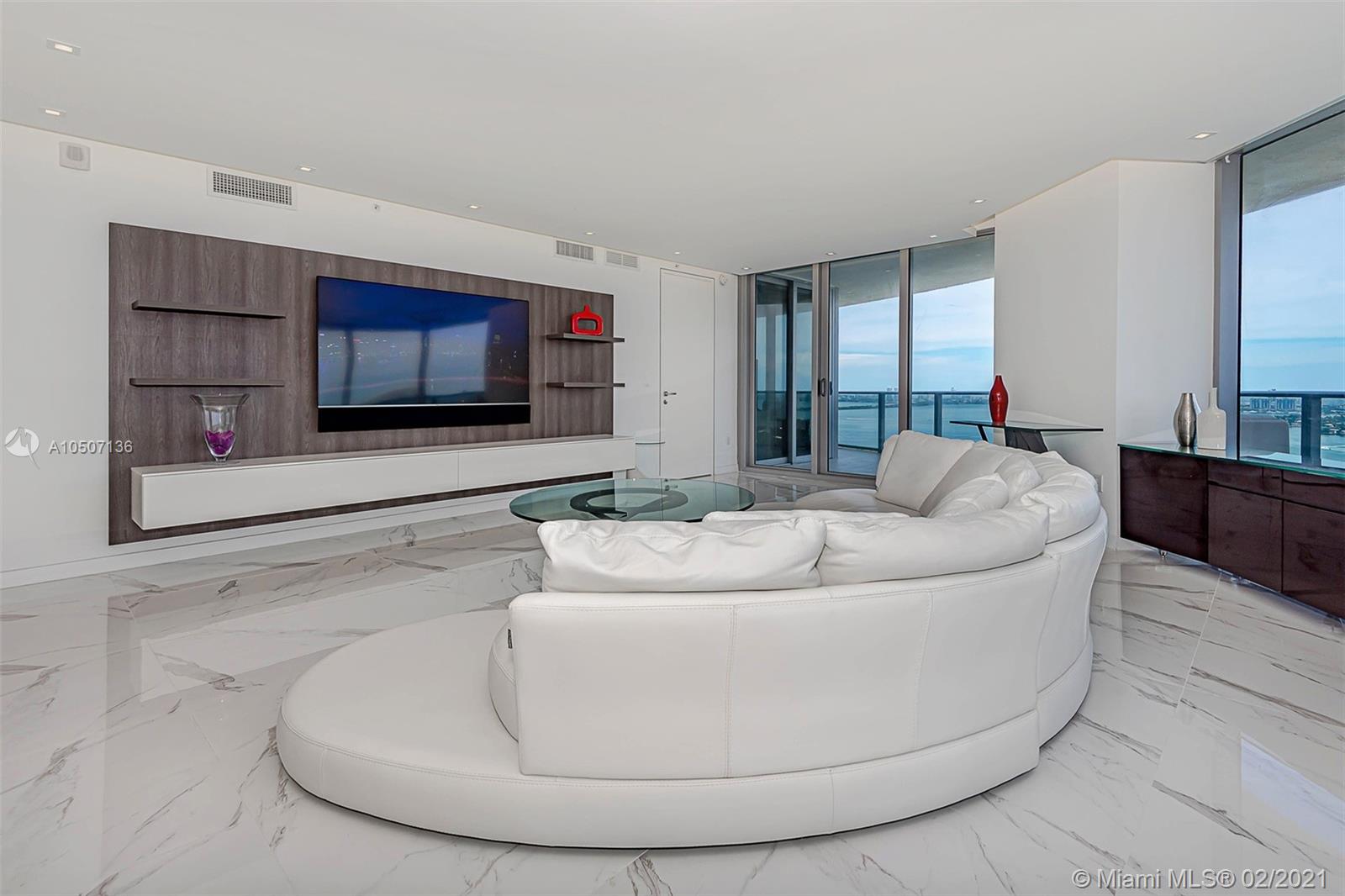 Amazing 3 bed/4 bath+den home in the sky at brand new Aria on the Bay. Bright and spacious sought out corner unit facing East with breathtaking panoramic Biscayne Bay and city views. Unit features fabulous top of the line finishes, Italkraft cabinetry, Bosch stainless steel appliances and Brizo Faucets. Floor-to-ceiling windows and large balcony, great for entertaining. Aria offers a collection of 5 star amenities including sunrise and sunset pool, hot tub overlooking Biscayne Bay, movie theater, state-of-the-art fitness center, yoga studio, spa, BBQ area, lounge and kids’ playroom, business center, great room with flat-screen TVs and pool tables, valet parking and concierge services. In the heart of the Art and Entertainment District, close to parks, restaurants, shops and entertainment.