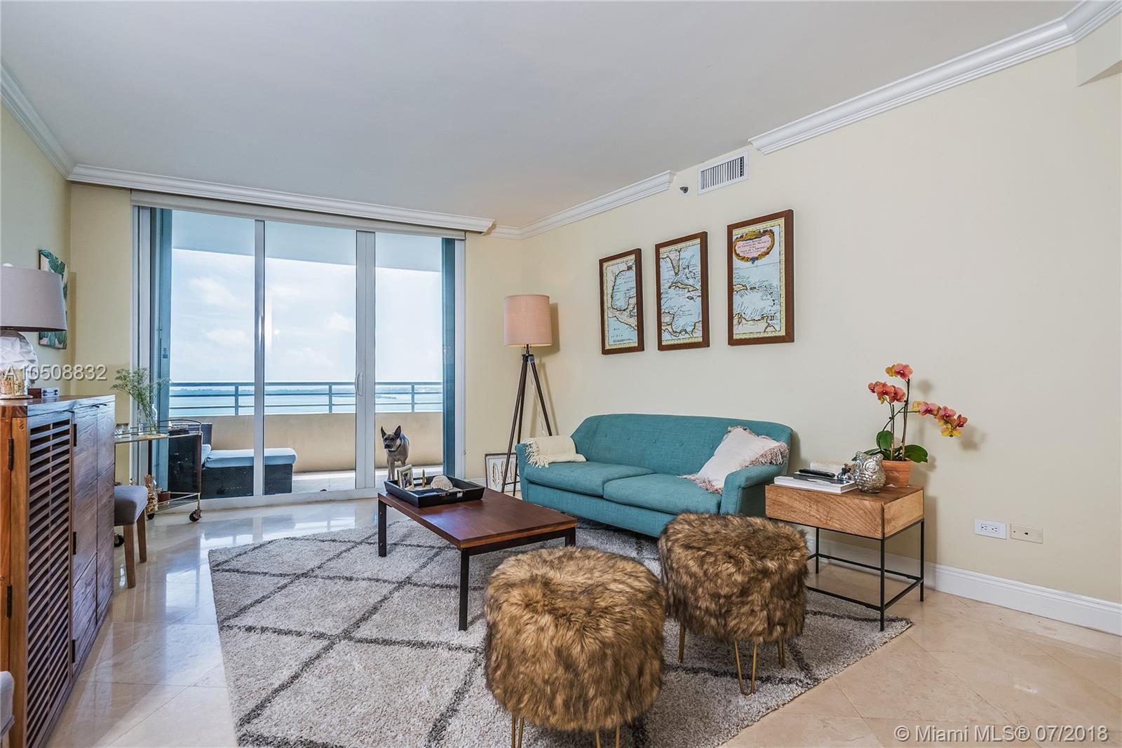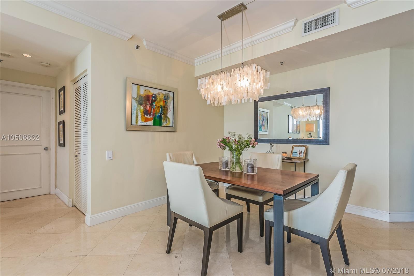 Exclusive Island living just steps away from the epicenter of Miami. Surrounded by water, Brickell Key is one of Miami's top neighborhoods and includes a 1-mile jogging path along the bay. There is a marketplace on the island as well as fine dining. Recently renovated Two Tequesta is an elegant first-class building with 24hr concierge/ full-service staff, bay-side pool, Jacuzzi, bi-level gym, indoor basketball court, tennis courts, off-leash dog park, racquetball, yoga room and exercise classes. Largest one bedroom in the building with over 1300sq ft of luxury interior space directly overlooking Biscayne Bay, South Beach, Port of Miami and Key Biscayne. Marble flooring throughout, large open Den and 2 full baths. Includes 1 parking and 2 storage spaces.
