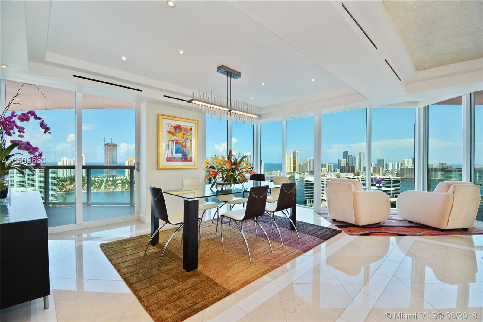 WOW! ENTER THRU PRIVATE ELEVATOR & IMMEDIATELY & THROUGHOUT SEE ENDLESS PANORAMIC OCEAN, BAY & MARINA VISTAS. THIS EXTRAORDINARY SKY HOME WILL LEAVE YOU BREATHLESS. NO EXPENSE SPARED & ALL REDONE BY FINEST ARTISANS & CRAFTSMEN TO CREATE A WORK OF ART. NOTHING ORIGINAL REMAINS. MARBLE THROUGHOUT ENTIRE RESIDENCE! NEW KITCHEN ELECTRIC WINDOWS TREATMENTS. 5 FULL BEDROOMS PLUS GREAT ROOM. HUGE LIVING AREA & MASTER WITH SITTING AREA AND A SEPARATE 2BED/2BATH APARTMENT WITH KITCHEN & LIVING ROOM. 5 GARAGE SPACES/OVERSIZED STORAGE. 3 LARGE WRAP TERRACES. A LUXURIOUS & INDULGENT HAVEN. IN THE HEART OF AVENTURA, NEXT TO FOUNDERS PARK FOR THE KIDS, WALK TO AVENTURA MALL, GROCERIES, RESTAURANTS, SOFFER EXERCISE TRAIL AROUND RENOWNED TURNBERRY ISLE GOLF COURSE. GREAT RESIDENCE IN GREAT LOCATION.