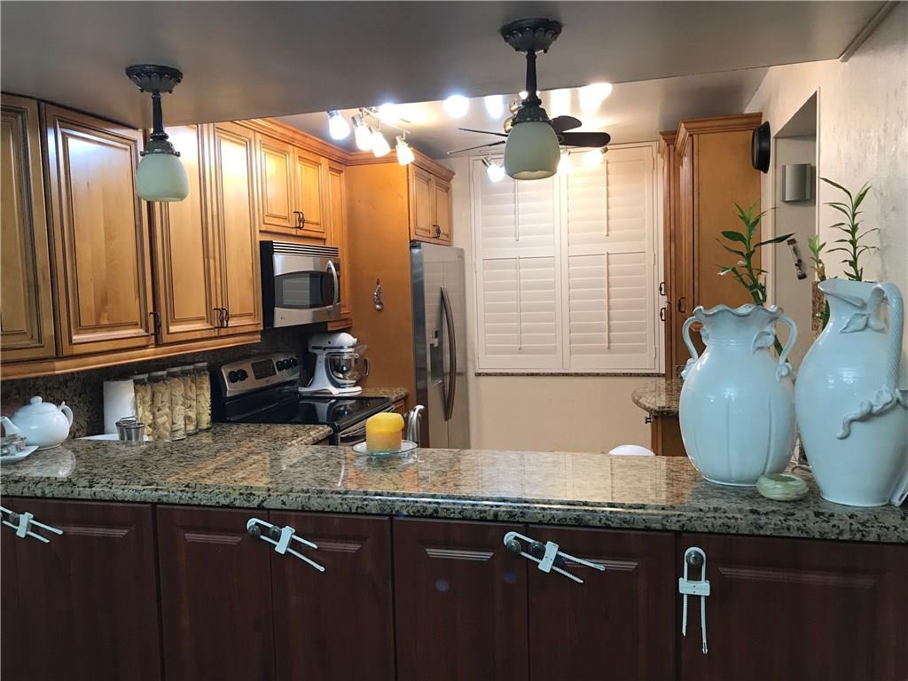Beautiful remodeled 1st floor unit with unbelievable water views! 2 bed, 2 bath+bonus room unit includes tinted hurricane impact windows & plantation shutters throughout, Amazing remodeled kitchen with wood cabinets, granite counter tops & stainless steel appliances. Remodeled bathrooms. Full-size washer and dryer in unit. 1 year old water heater. Crown molding & base molding throughout. One designated packing right outside the door. Maintenance features cables & water and membership to the clubhouse.