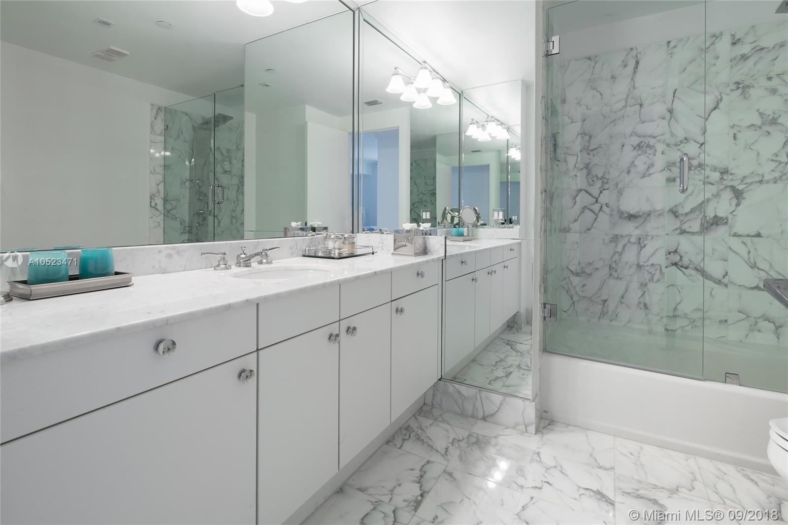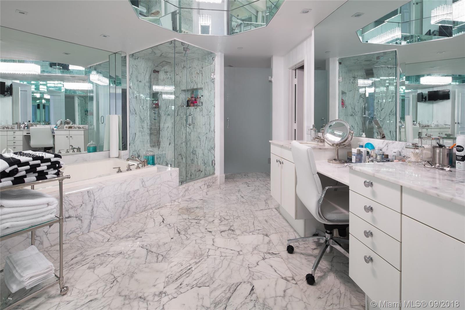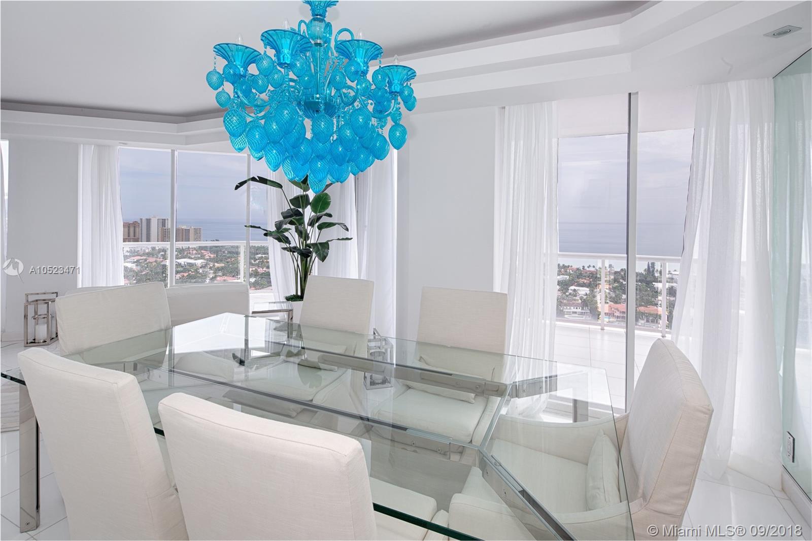 Highly sought after two bedroom PLUS DEN (which may be closed for third bedroom)Biscayne Model apartment. Floor plan attached. Interior features include private elevator entry along with spectacular views of the ocean, intracoastal and Golden Beach from every room. Offered fully furnished turn key if desired-negotiable. Contemporary furnishings from Artefacto along with beautiful white marble floors, motorized shades and drapery, LED lights, new plumbing fixtures, new carpeting in bedrooms, closet interiors, and new A/C. Additional walk in closet in master bathroom. Easy to show and sell!