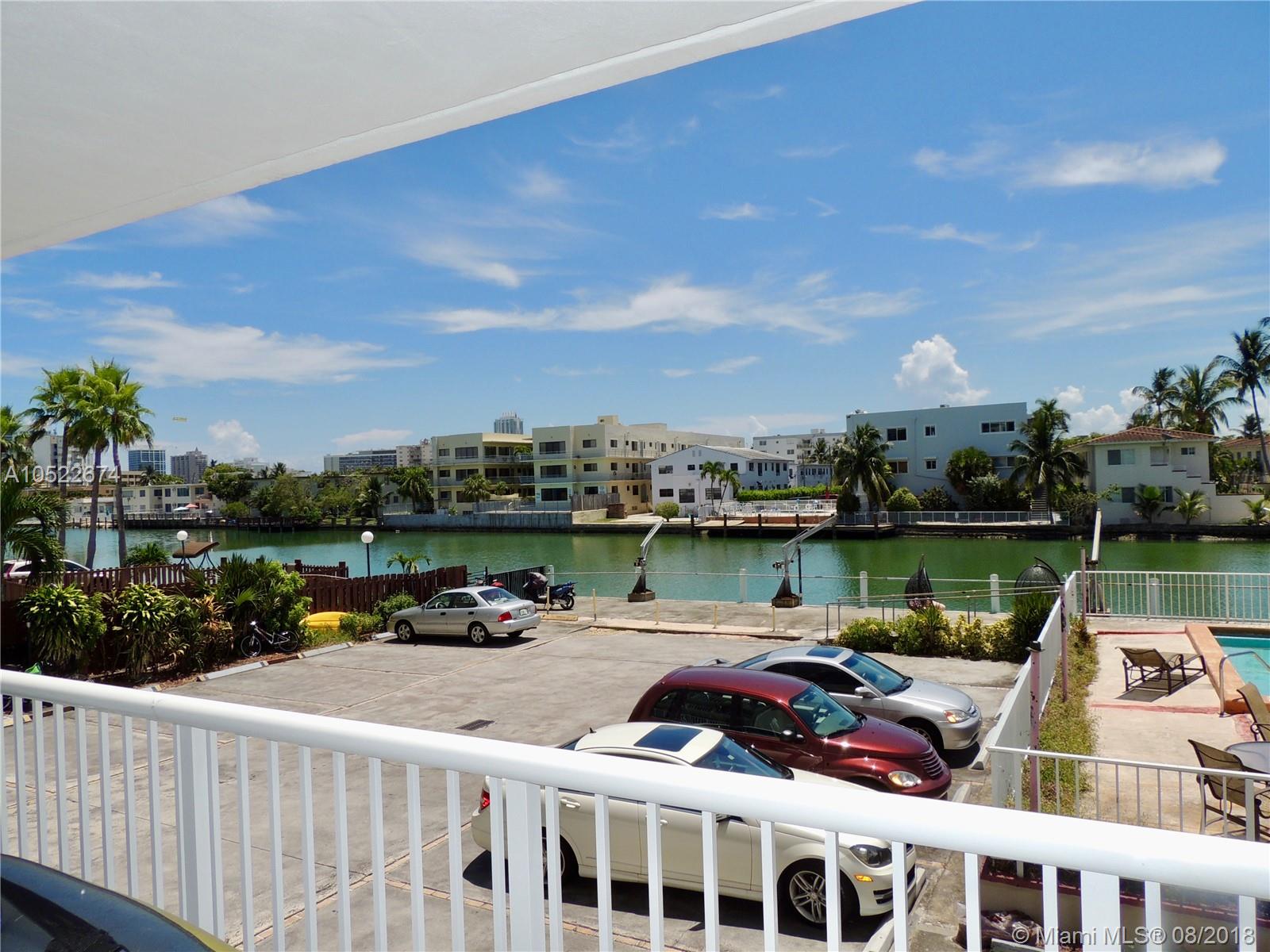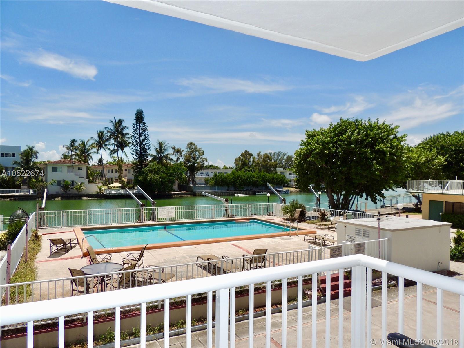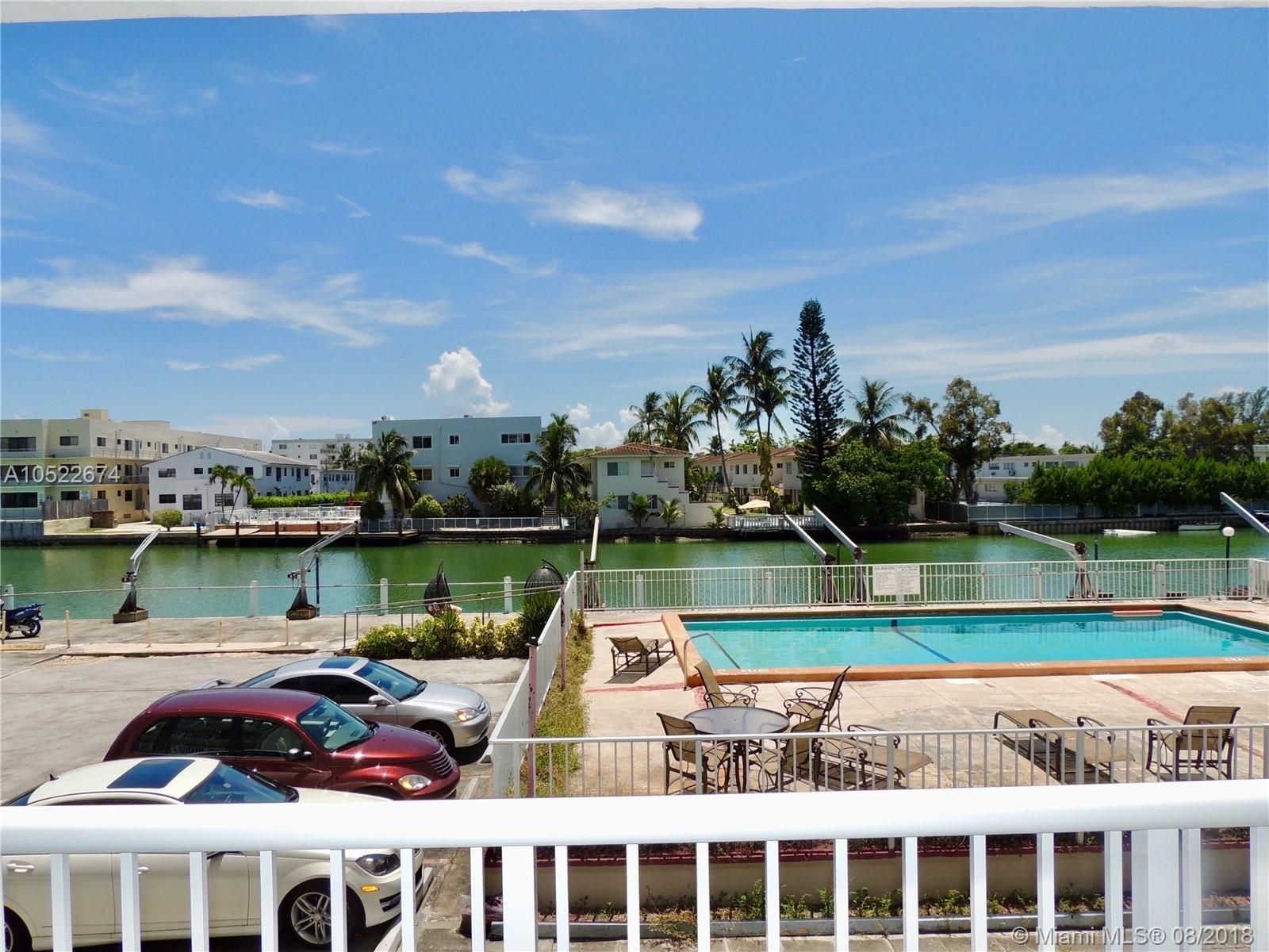 Large canal front 2/2 at Normandy Shores Island. Oversized balcony overlooking the pool and canal with amazing sunset views. Gated parking and secured building in a quiet neighborhood. Apartment has lots of light. Remodeled kitchen and bathrooms. Fans in both rooms and lots of closet space. Quiet dead-end street by the golf course. Steps away from the new City Center on 71st Street city development plan.