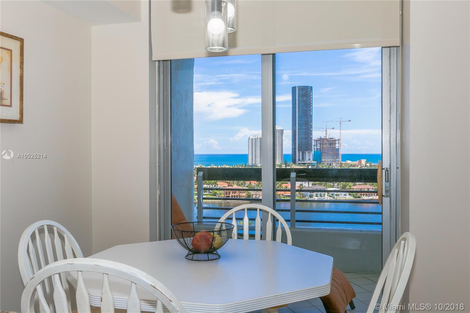 Beautiful and spacious condo overlooking the ocean and the intracoastal. Remodeled kitchen and bathrooms. Engineered hardwood floors. Best views of the entire complex with front row views to the canal and ocean. Quiet and far away from the causeway. Stainless steel appliances. Washer and dryer in unit. Walking closet in master bedroom. Association has plenty of reserves. Amenities include 8 Tennis courts, pool & spa, grocery store, valet, fitness center, concierge, walking path along canal, shuttle stop. Minutes from the Aventura Mall and the beach. Walking distance to house of worship.