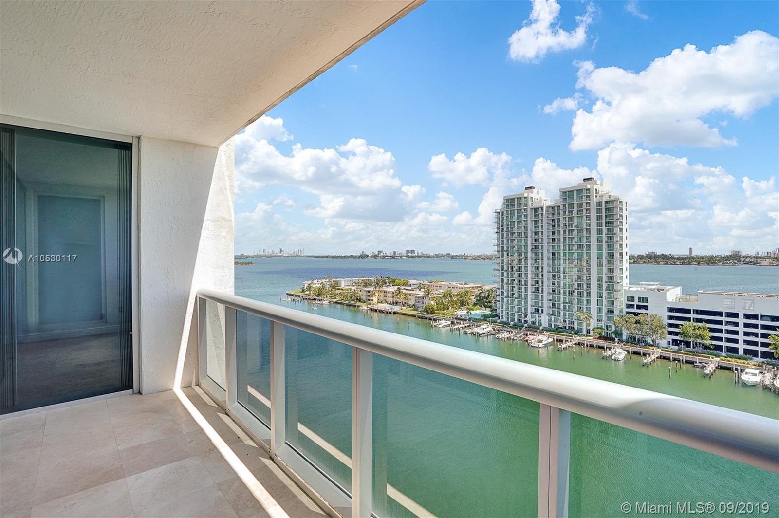 Updated, move-in ready condo in North Bay Village! Amazing 2 bedroom, 2 bathroom waterfront residence that features water views from every room. Large open, updated kitchen with breakfast bar, stainless steel appliances and granite counter tops. Large master bedroom with ensuite bathroom, separate shower and tub, and double sink. Washer/dryer in unit. This waterfront building only has 3 residences per floor and offers great amenities - spectacular rooftop top heated pool and exercise room, summer kitchen/bbq area, indoor kitchen, and 360 views of the bay/city. Unit comes with 2 garage parking spaces. Easy to show!