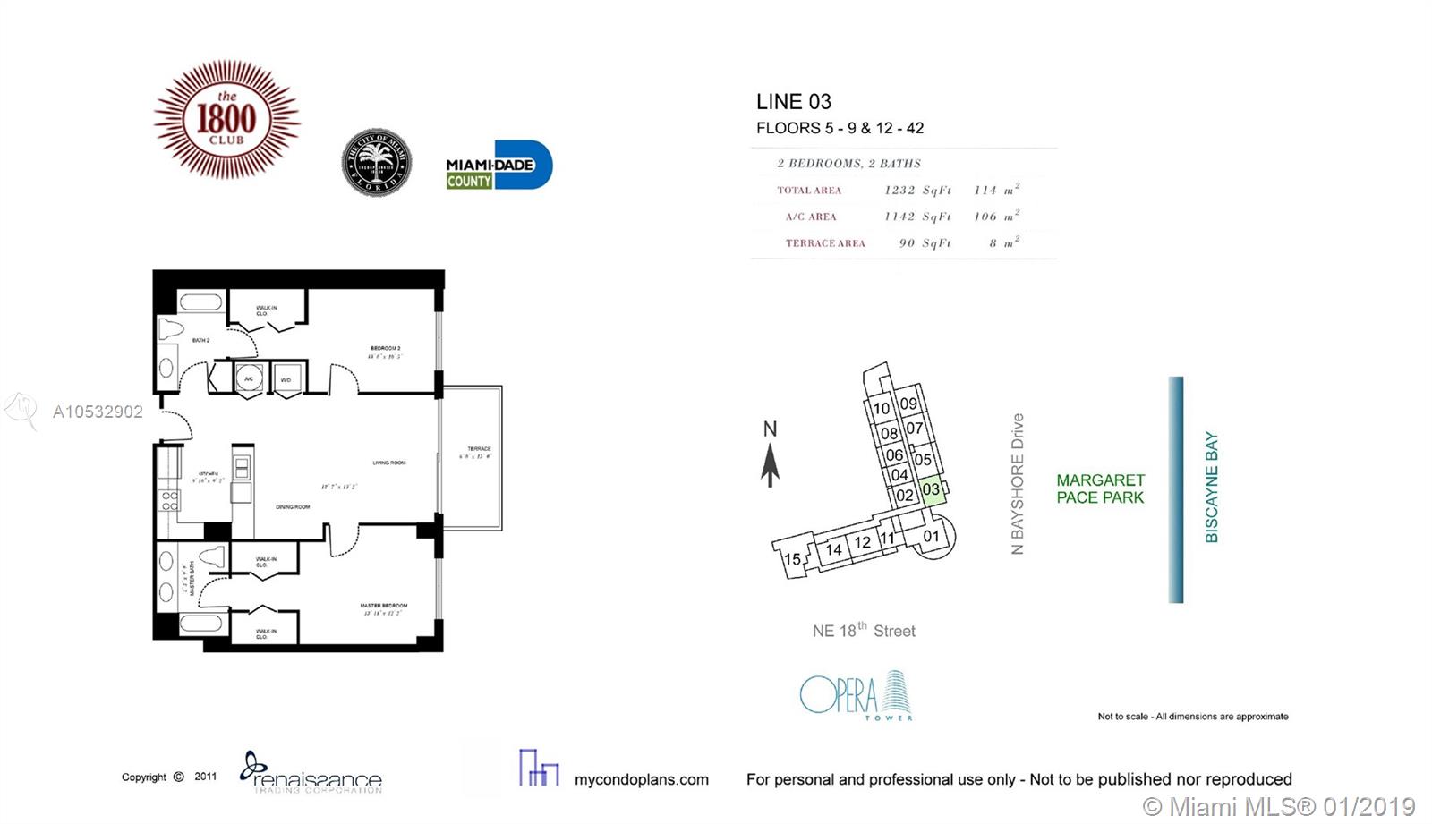 PRICED TO SELL! One of the best lines at the 1800 Club building, which faces Margaret Pace Park and the open Biscayne Bay. Very large 2 bedrooms, 2 bathrooms, high ceiling apartment with incredible water view of Biscayne Bay from every room. Kitchen has black granite counter top and stainless steel appliances. 24/7 valet and concierge. This apartment comes with a private storage on the same floor. Convenient parking space on the same 5th floor as the apartment. The building offers many great amenities, such as a state-of-the-art fitness center, a swimming pool, sauna, steam room and 1 assigned parking space. Currently rented!