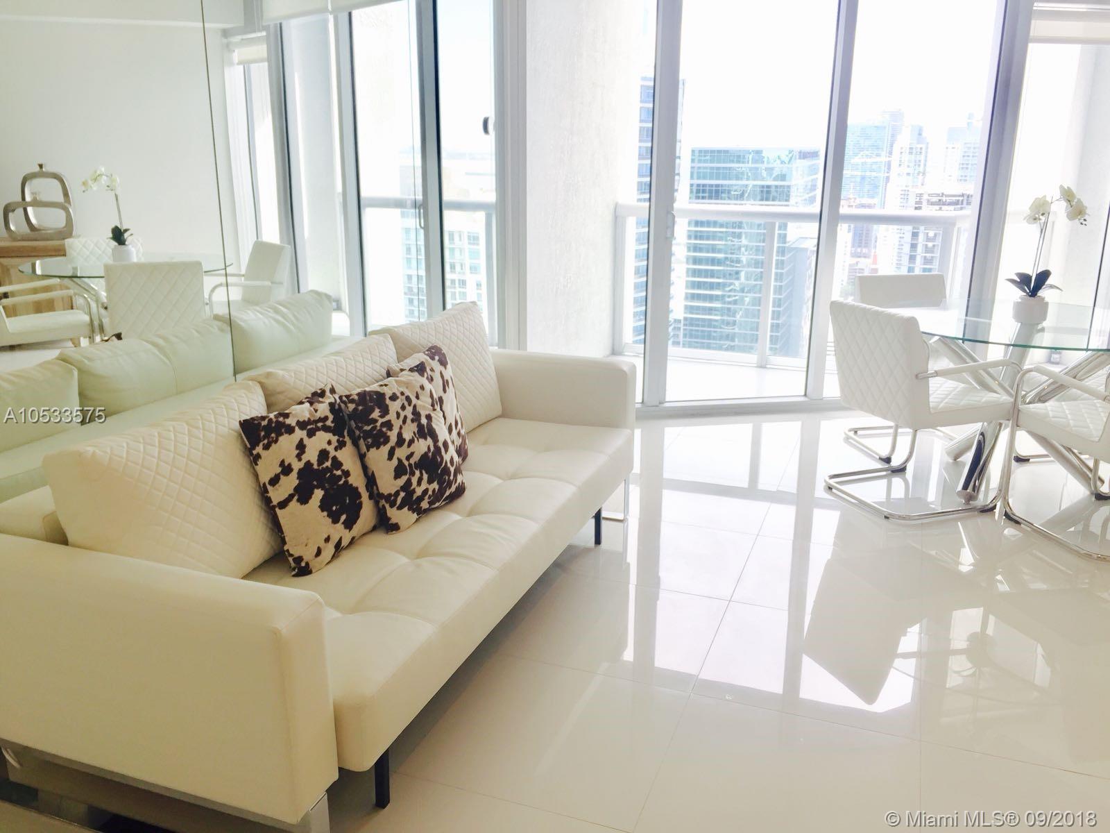 Large studio on Icon Brickell, Facing Miami River & Historic Tequesta Park with amazing city views from a 50th floor. Furniture by Tui, blinds, wall mirrors, walking closet, porcelain floors. Full service at a gorgeous spa and complete fitness center with many classes included on the maintenance. Infinity edge pool, the longest in Florida!