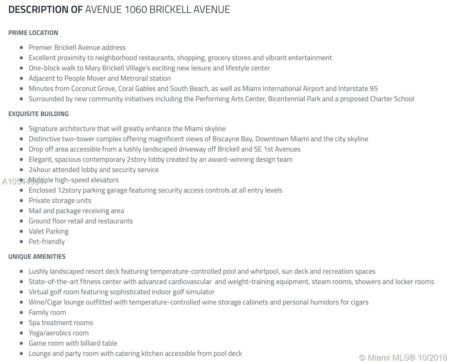 Spectacular unit in sought-after 1060 Brickell! Great building! Great amenities, including golf simulator! All-in-all, a great investment oportunity Come and see it!
