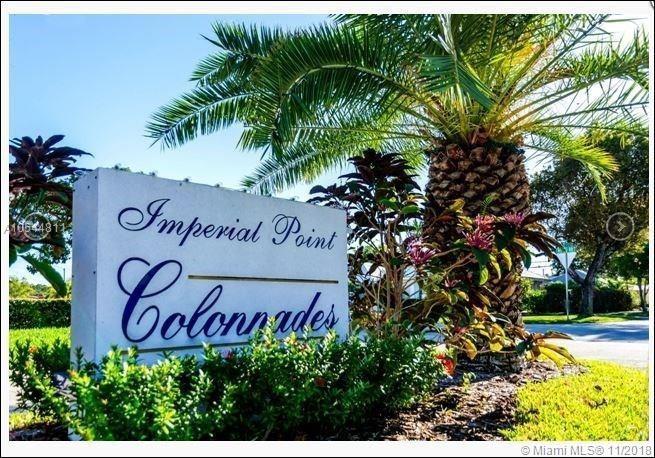 Priced to sell! MOVE IN READY!... Largest Unit with BALCONY!.... Imperial Point Colonnades is a very well maintained condominium with lots of amenities - a great pool area with Cabanas, Gym, Club Rooms, Pool tables, Bocce ball, Shuffle board, and Grills. This second floor unit is the largest 2 bedroom/ 2 bathroom model with screened balcony, Very well maintained and updated. Newer appliances & air conditioning unit. Granite counter tops in the kitchen and marble vanities in the bathrooms. Great East Fort Lauderdale location- close to the beach and easy to get to downtown, shopping and restaurants. Laundry and additional storage on the same floor. New owners may lease after 2 years of ownership, Association requires 10% down for financing. Easy to Show.