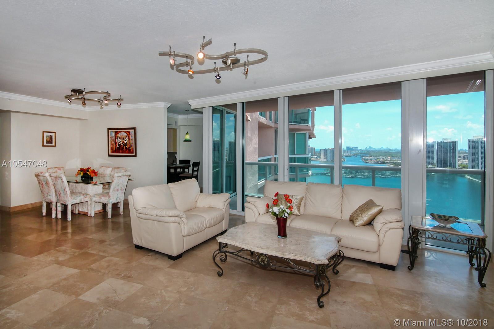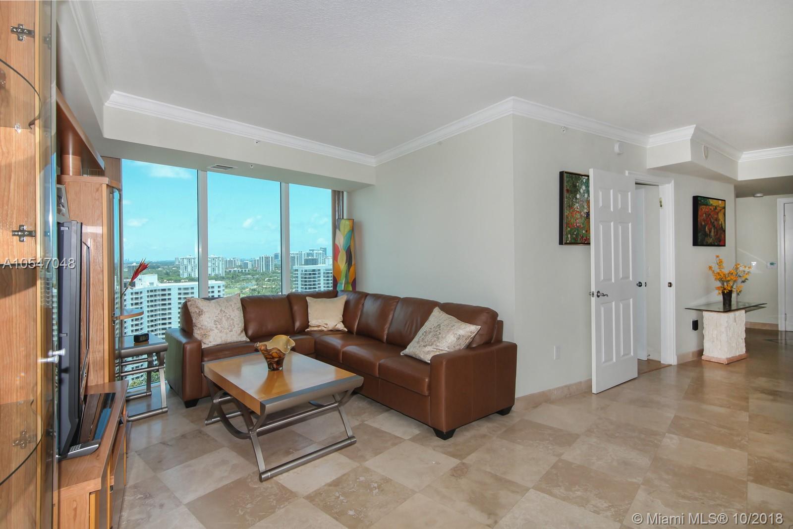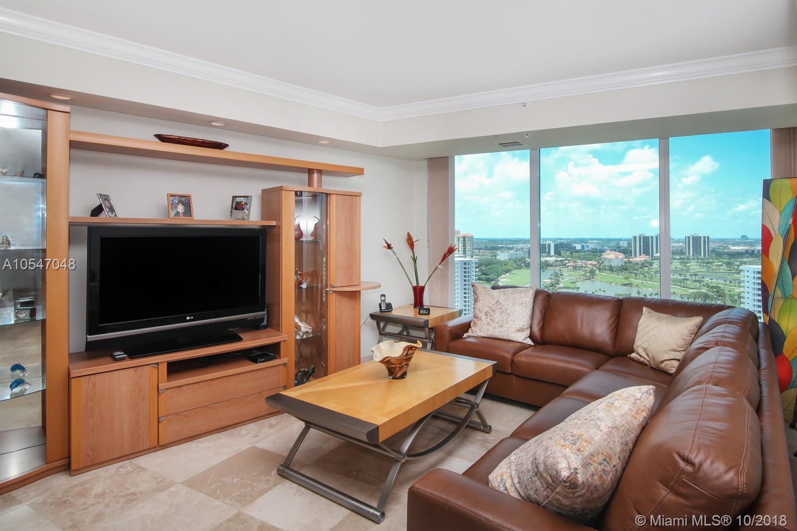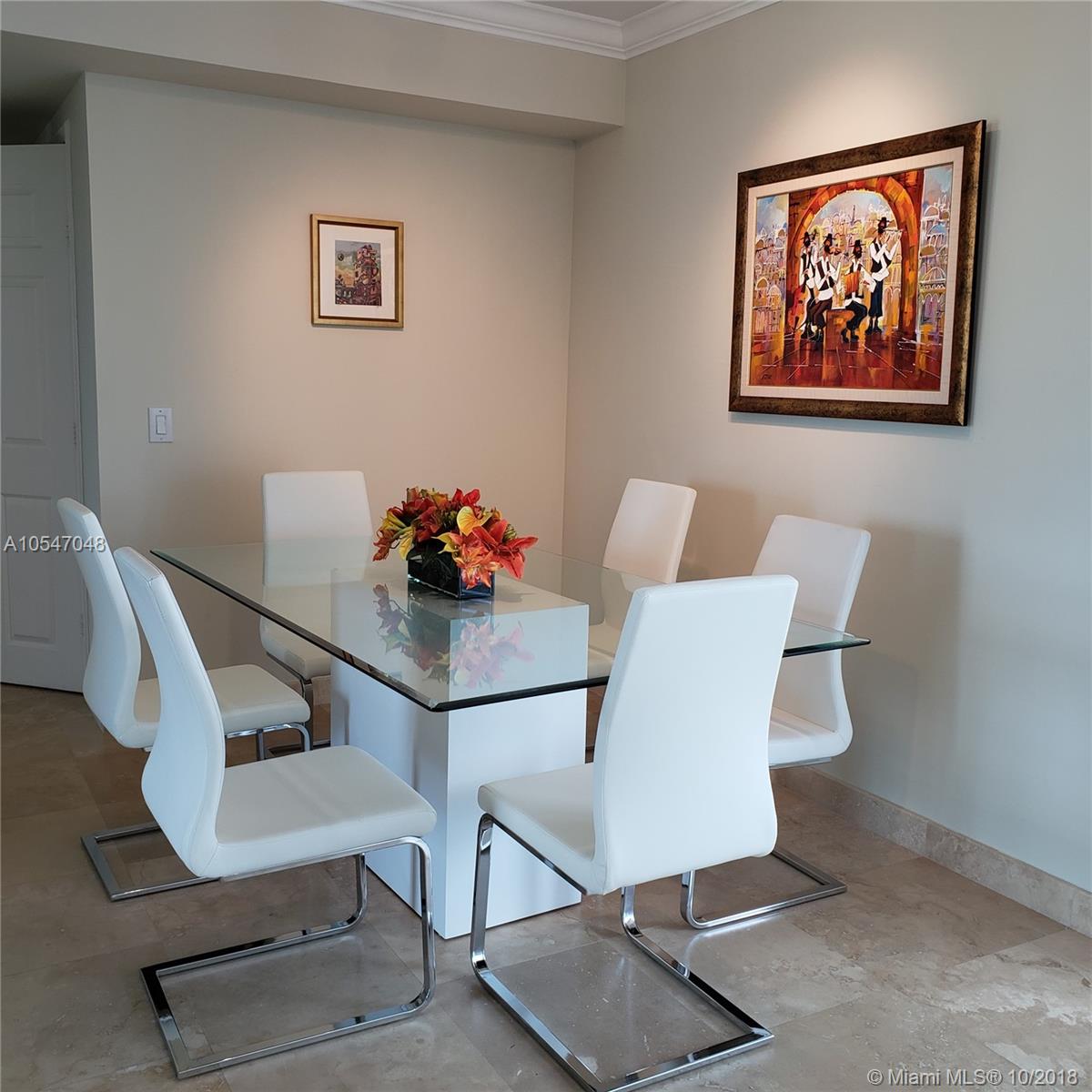 HUGE PRICE REDUCTION!! Amazing, furnished and finished 3 bedroom 2.5 bath, updated unit with Brand New Kitchen, marble and hardwood floors. All New Appliances, never been used. Kitchen boasts New White Quartz counter tops, all new kitchen cabinets, built in wall oven and microwave. Tons of storage. New Dining room table and chairs. Huge walk in closets, New tank-less hot water heater and New AC system. Electric blinds in the living room. This unit has a large balcony facing South with beautiful water views from the South and Golf Course views from the North. Semi private elevators with only two units on this floor. Very quiet and private. Turn key unit on a very high floor, all is new.