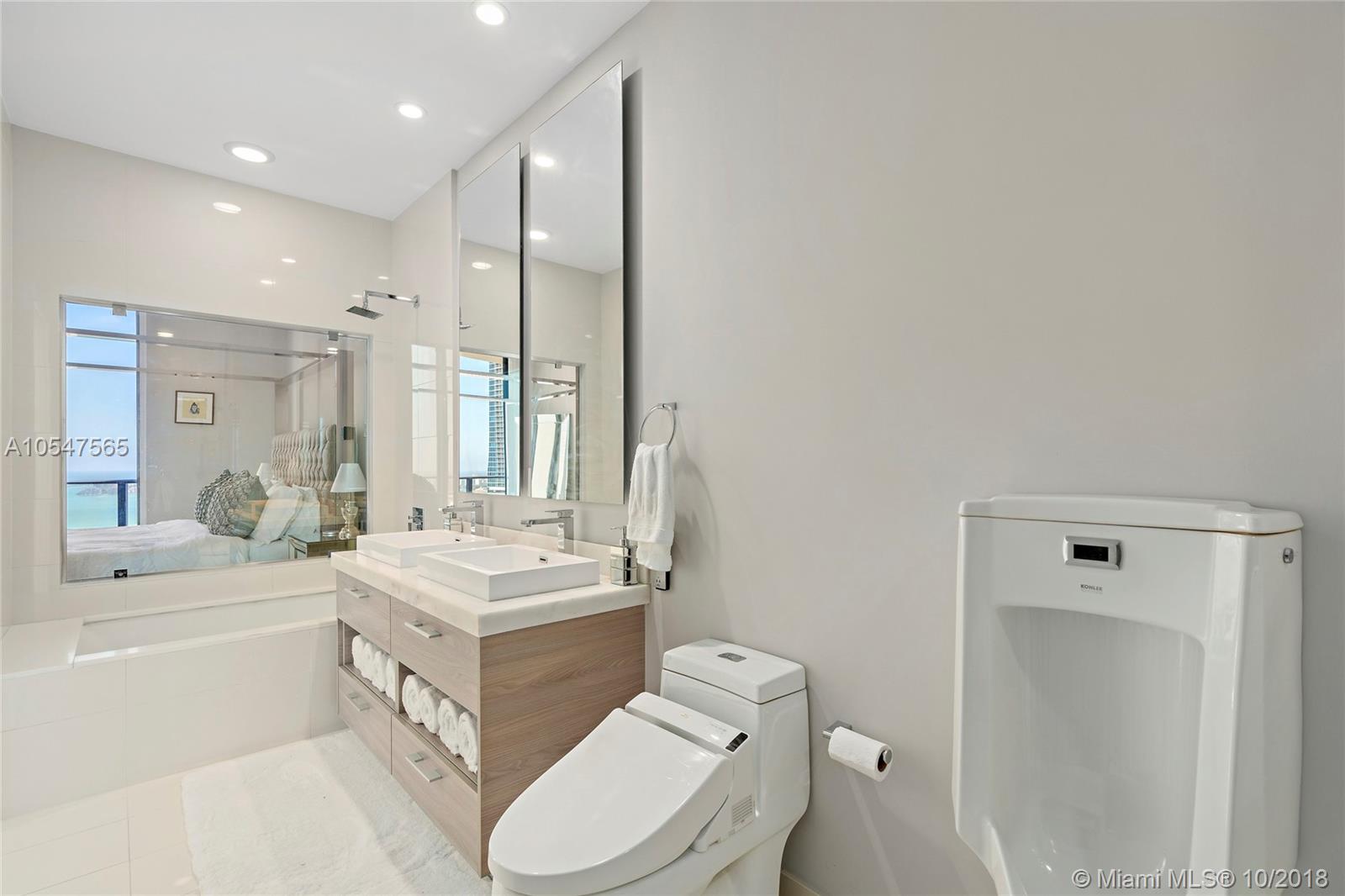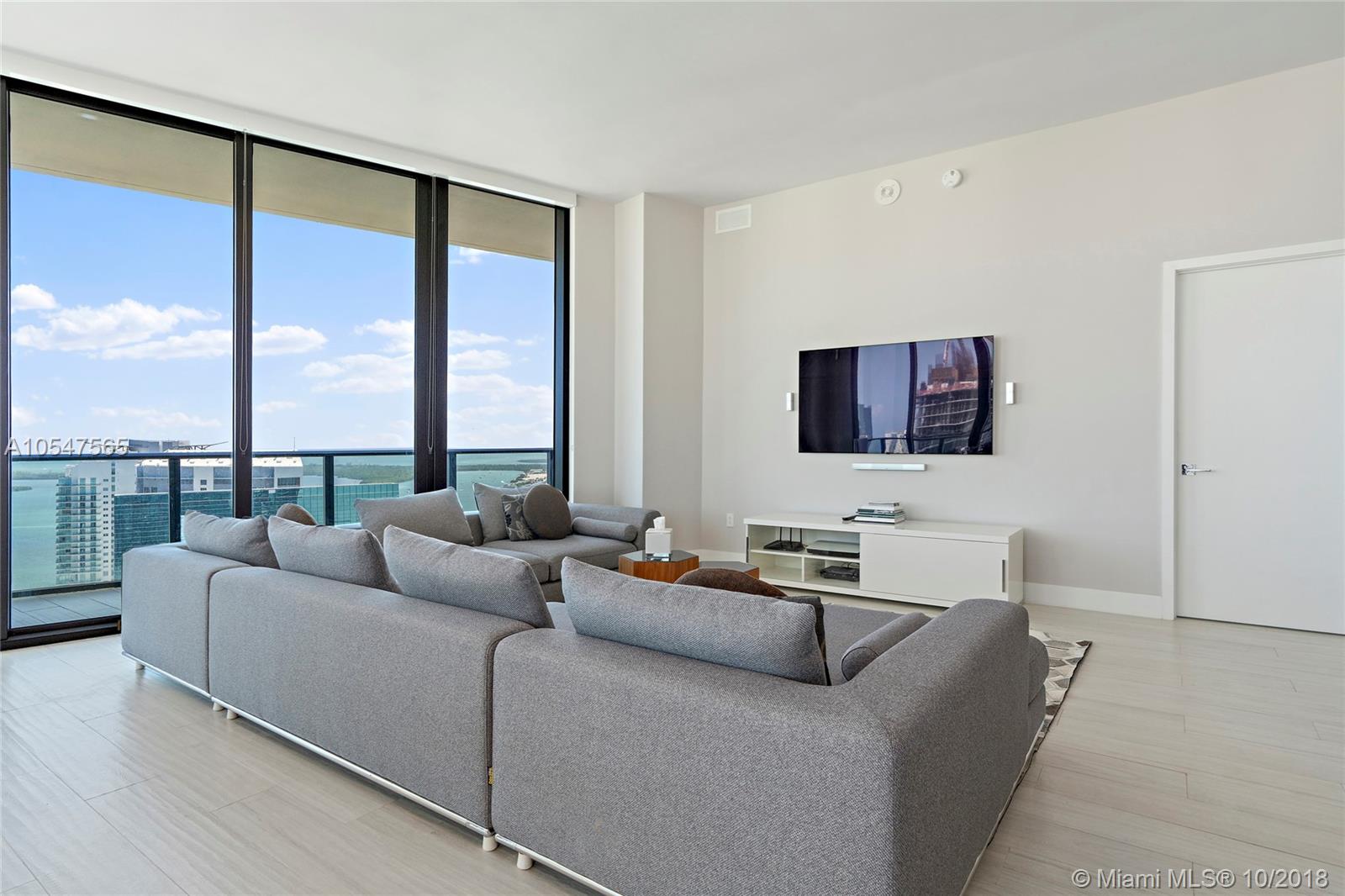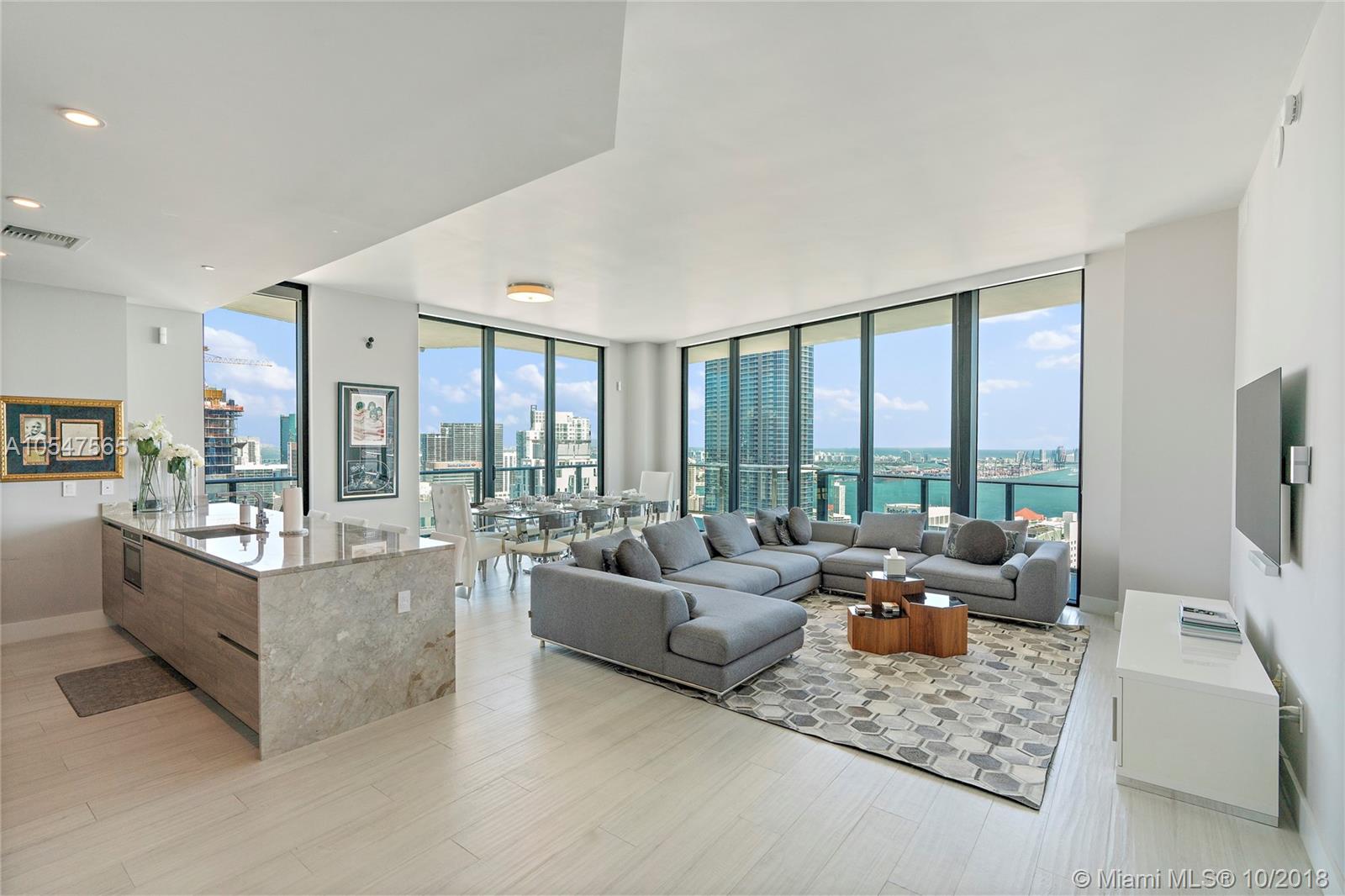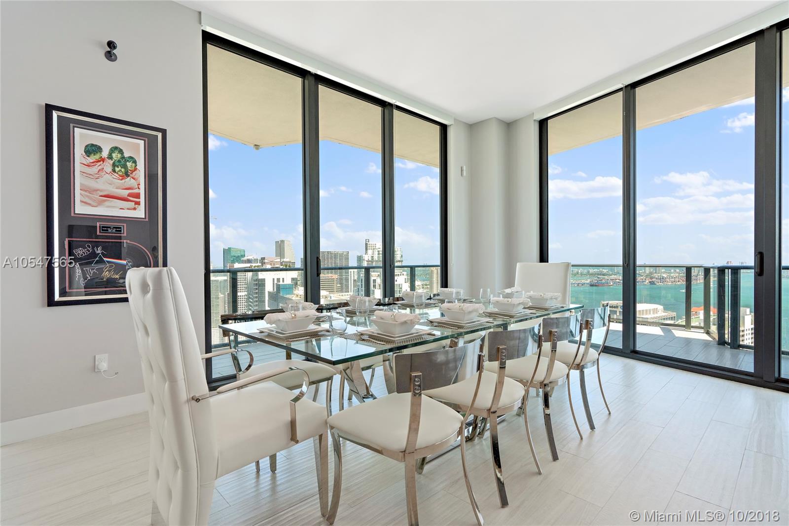 Spectacular Penthouse on 50th floor of SLS Brickell featuring panoramic views extending across Biscayne Bay, Miami Beach and Miami Skyline. 3 bedrooms all en-suite plus den. High end finishes include imported Italian porcelain floors, Bosch and Sub-zero appliances, Light marble kitchen countertops, floor to ceiling windows. Wrap around balcony with picturesque views from sunrise to sunset. Amenities include spa, state of the art gym, heated pools, access to SLS Hotel services, restaurant and more.