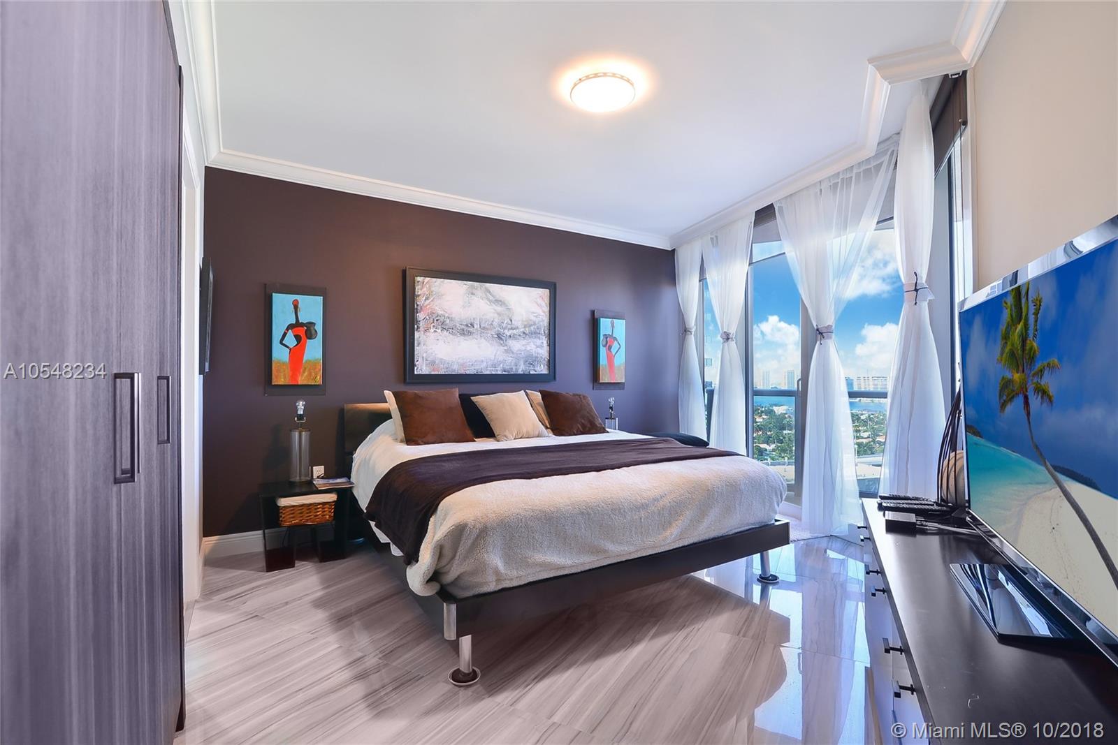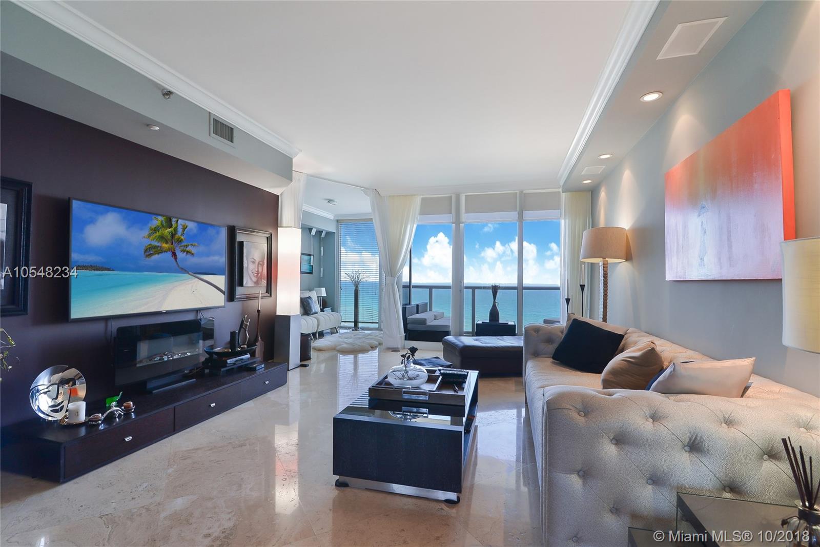 Panoramic Direct Ocean and Bay views ! Totally renovated flow through 2 bedroom plus a den/ 2.5 Bath apartment! Top of the line kitchen cabinets & appliances: Bosch oven & dishwasher. Samsung wifi radio refrigerator. Lots of built in storage & closets, 160 bottle wine cooler with wall unit, designer front door, top technology washer & dryer, marble & porcelain floors throughout. Sunrise & Sunset terraces!