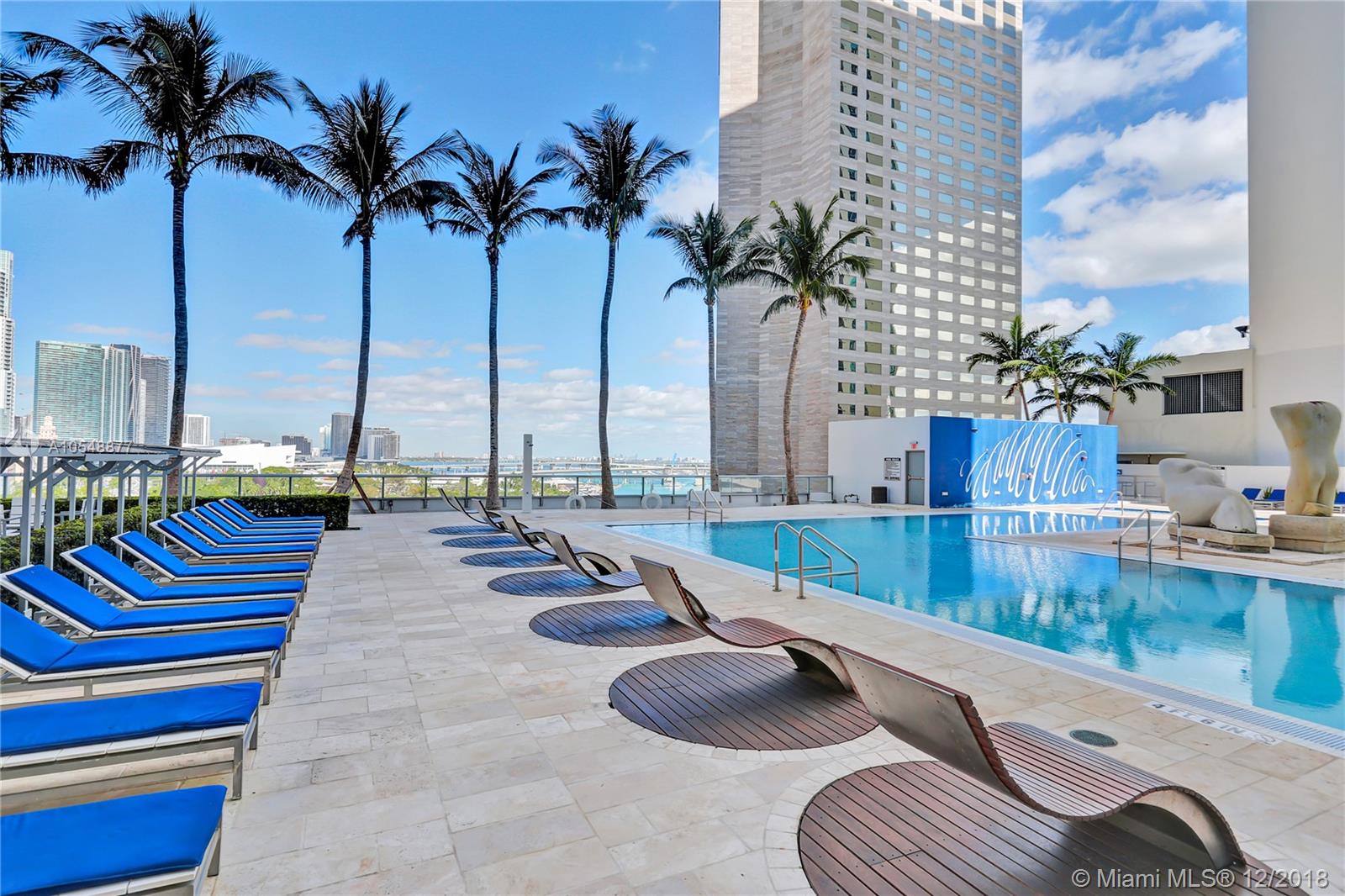 Capturing stunning water views from the 38th floor of One Miami's East Tower, this 2BR/2BA condo is located in the highly desired and rarely available 05 line. In addition to incredible views of Fisher Island, Key Biscayne and Brickell Key, this meticulously maintained condo with split floor plan features European designer cabinetry, imported granite countertops, new range, newer front-loading washer & dryer, updated tile flooring in the kitchen and real hardwood flooring throughout. Residents of One Miami enjoy an enviable Downtown Miami address as well as a number of amenities including 24/7 security and concierge services, valet parking, heated swimming pools, fitness center with cardio studio, recreation room, business center, and private elevator access to the Intercontinental.