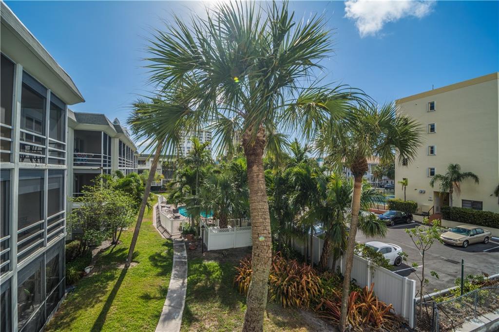 Beautifully 2nd floor apartment just steps to beach! Located on A1A. Amazing garden, pool and canal view with intercoastal access and community boat dock. Ceramic tile floor, very clean and spacious. Walk in closet in bedroom and hall closet with plenty of storage. Unit has hurricane impact window and accordion storm shutter system for patio. Secure complex including laundry facilities, elevator, reserved parking spot and ample guest parking. Water, trash & land lease are included in the Association fee.