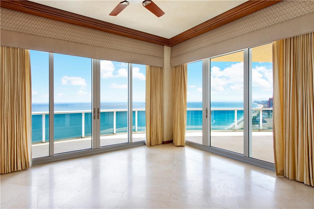 Direct Oceanfront Penthouse with amazing SE oceanfront views. Luxury living on the sand. Views from every room. Open floor plan, 10 to 11 foot ceilings, 3 bedrooms with office, floor to ceiling impact windows with private foyer. Resort style amenities include 10 acres of oceanfront, concierge, valet, guard gated, 24 hr. security, pools & spa, tennis courts, fitness center, business center, poolside café, private beach pavilion, and pet friendly. Walk to shops and restaurants. Must see. Estate Sale.
