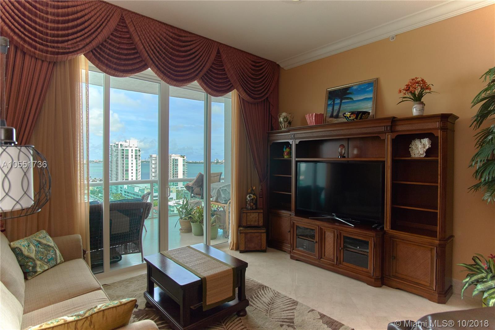 Spectacular penthouse at 360 condominium. This spacious condo boasts 10' ceilings, beautiful unobstructed bay and city views, only PH that has balcony access from the 2nd bedroom. PH01 is the largest two bedroom floor plan in 360 and has an expansive, wide balcony. Marble floors throughout, a Euro style open kitchen with GE Profile appls., brand new washer & dryer en suite, brand new AC unit and purified water system and custom made closets. This unit is in impeccable ready to move in condition and the best PH available in building A. 360 offers a private marina, 24 hr. security & concierge, free valet parking, fitness center, tropical pool area, club-room and is pet friendly. This PH will not last!