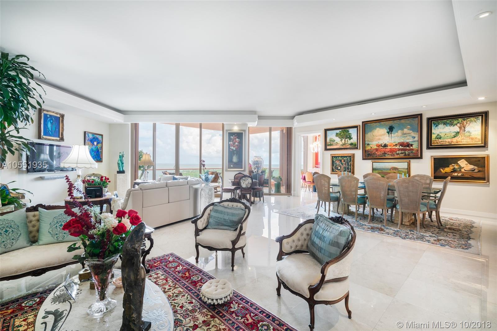 Remarkable Penthouse unit on the 15th Floor at The Gables Club. Breathtaking eastward views of Downtown Miami, Cocoplum Marina and Biscayne Bay, one of the best in the building! Spacious open floor plan with Great Room featuring a built-in bar, marble floors, impact picture windows with sliding doors to oversized balcony. Enjoy your morning coffee or mid-day meals with with a view in the kitchen with breakfast nook that maximizes the outstanding views of this one-of-a-kind penthouse. First-Class Building amenities include full-service Restaurant & Bar, Salon, Spa, Putting Green, 2 Pools, Sauna, Hot Tub, 24-hour concierge, Valet, Gated entry to grounds. This unit comes with 2 parking spaces and storage unit. The 3rd bedroom is currently being used as a Den.