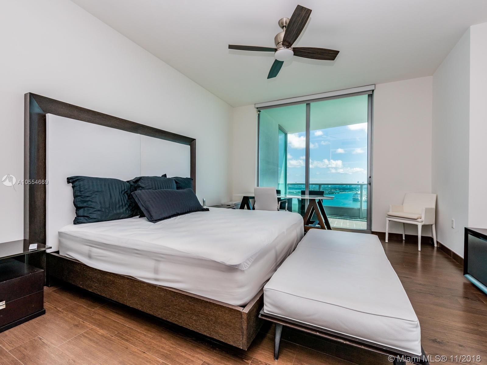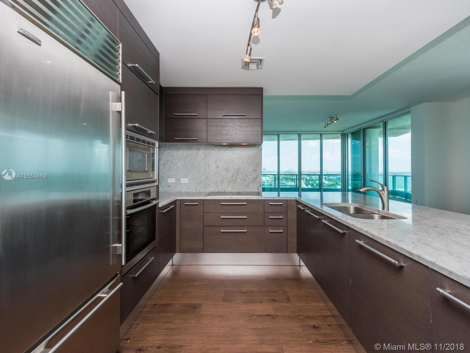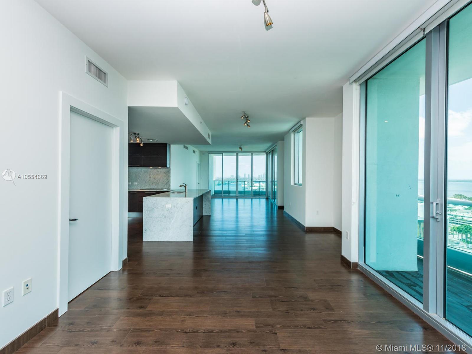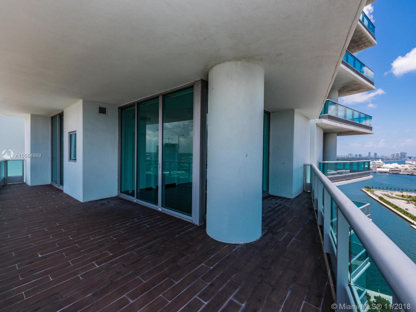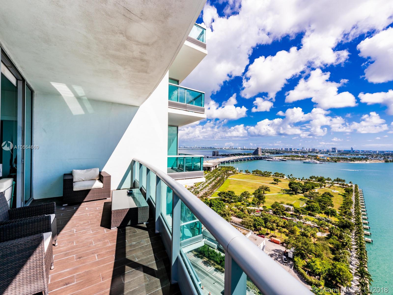 Best priced & most desired floor plan. Direct water corner unit with private elevator & foyer 2 bedroom + Den, 3.5 bath residence with 3 terraces, den has full bath & closet & can be easily converted to a 3rd bedroom. Split floor plan with large master bedroom has two closets and private terrace overlooking Biscayne Bay. Modern open kitchen with Sub Zero and Miele appliances. Spacious living/dining area, high ceilings and huge terraces make this feel like a house. Must see. Call today.