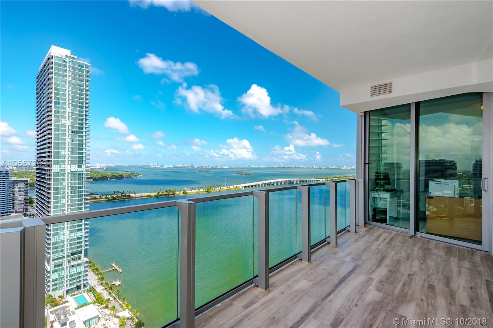 Luxury corner unit with sweeping city and bay views. Floor-to-ceiling windows, 10-foot ceilings, 8-foot terraces, top of the line kitchen appliances, wonderful finishes, elegant large format 32x32 glossy white tiles. Biscayne Beach Waterfront Residences is a spectacular 51-story luxury condo with innovative amenities such as; 335 linear feet of direct bay waterfront, zero entry beach club pool, 6 private residence pools, beach club bar, beach cabanas and lounge areas, cabana/towel service, and Jet skis, paddle boards, kayaks, rafts and snorkeling equipment available. Elegant foyer with private elevator. Amazing location in the heart of Edgewater close to upscale restaurants, clubs, shopping at The Shops at Mid-Town Miami and more.