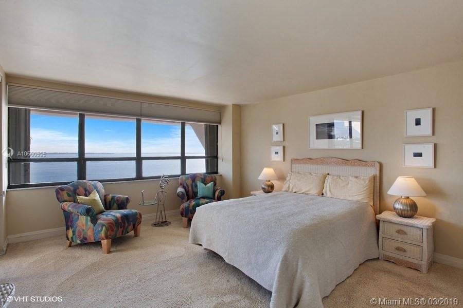 Nicely updated high floor, large 2/2 with 1,882 interior SF offering wide bay and marina views. This residence features a beautiful open kitchen with granite countertops, GE profile appliances, Stainless steel GE monogram refrigerator, and a pantry with sliding pullouts. Other features include a custom built-in wood wall in living room along with a wine cooler, tile floors in main living areas, recessed lighting, updated bathrooms, and wiring for surround sound. The master bedroom has 3 closets (the large walk-in closet offers custom built-ins). Master bath has lots of cabinets, makeup vanity, marble & glass shower and marble countertops. Don’t miss this incredible opportunity!