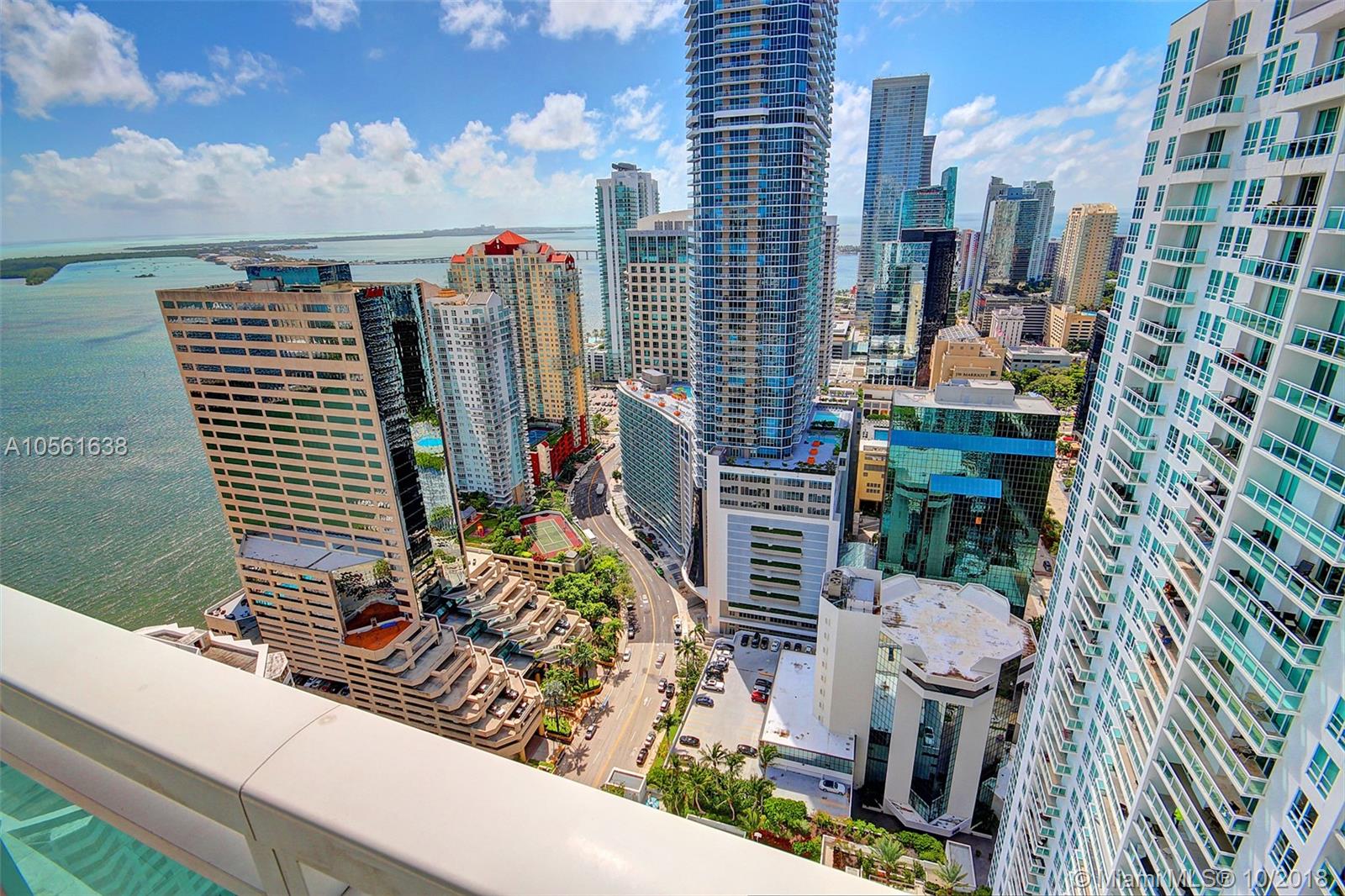 Designer upgraded and fully-furnished Lower Penthouse at Plaza with soaring 11 ft ceilings and views of the Biscayne Bay! High above the Brickell Bay skyline, this unit is turn-key, including upgraded kitchen appliances, porcelain flooring, custom light-fixtures, built-in storage and entertainment system, custom closets, glass shower enclosures, and full length vanity mirrors. Freshly painted. Plaza has lowest maintenance fees per square foot in the Brickell neighborhood for buildings that have a pool. Amenities include two pools, jacuzzi, recently updated gym with sauna, media room, conference room, zen-garden, 24-7 concierge, valet, and a brand-new lobby. One block from Brickell City Centre, Mary Brickell Village. Half block from Metro Mover station. All furnishings included in price!
