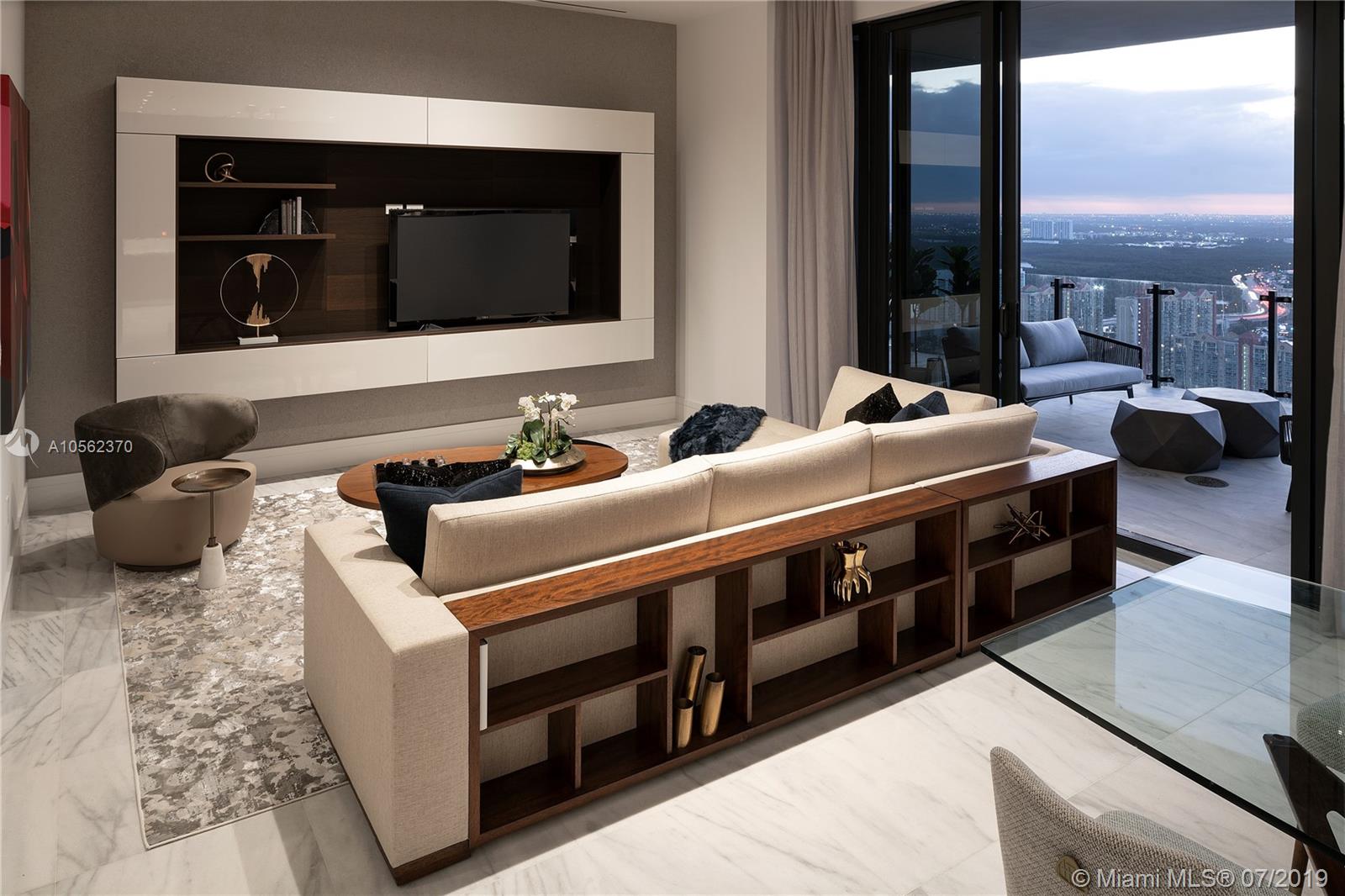 Gorgeous unit on the 34th Floor. Professionally decorated by ADRIANA HOYOS (furniture included in sale). Ultra Exclusive Boutique Building "THE MUSE" Sunny Isles. Very personal w/just 68 high luxury residences. Spacious 2 bedroom 2.5 bathrooms + den which could be easily converted to a 3rd bedroom. 12ft ceilings, Calacata marble flooring throughout entire apartment, State of the art custom kitchen w/ Italian Cabinetry with Sub Zero & Wolf appliances including a temperature controlled storage for 148 wine bottles. This residence also comes w/a Smart Home System which can be controlled from your personal smart phone or ipad. Last but not least the best part of this apartment is the massive outdoor terrace more than 15ft wide w/ complete outdoor kitchen/Bbq & panoramic views of Intracoastal.