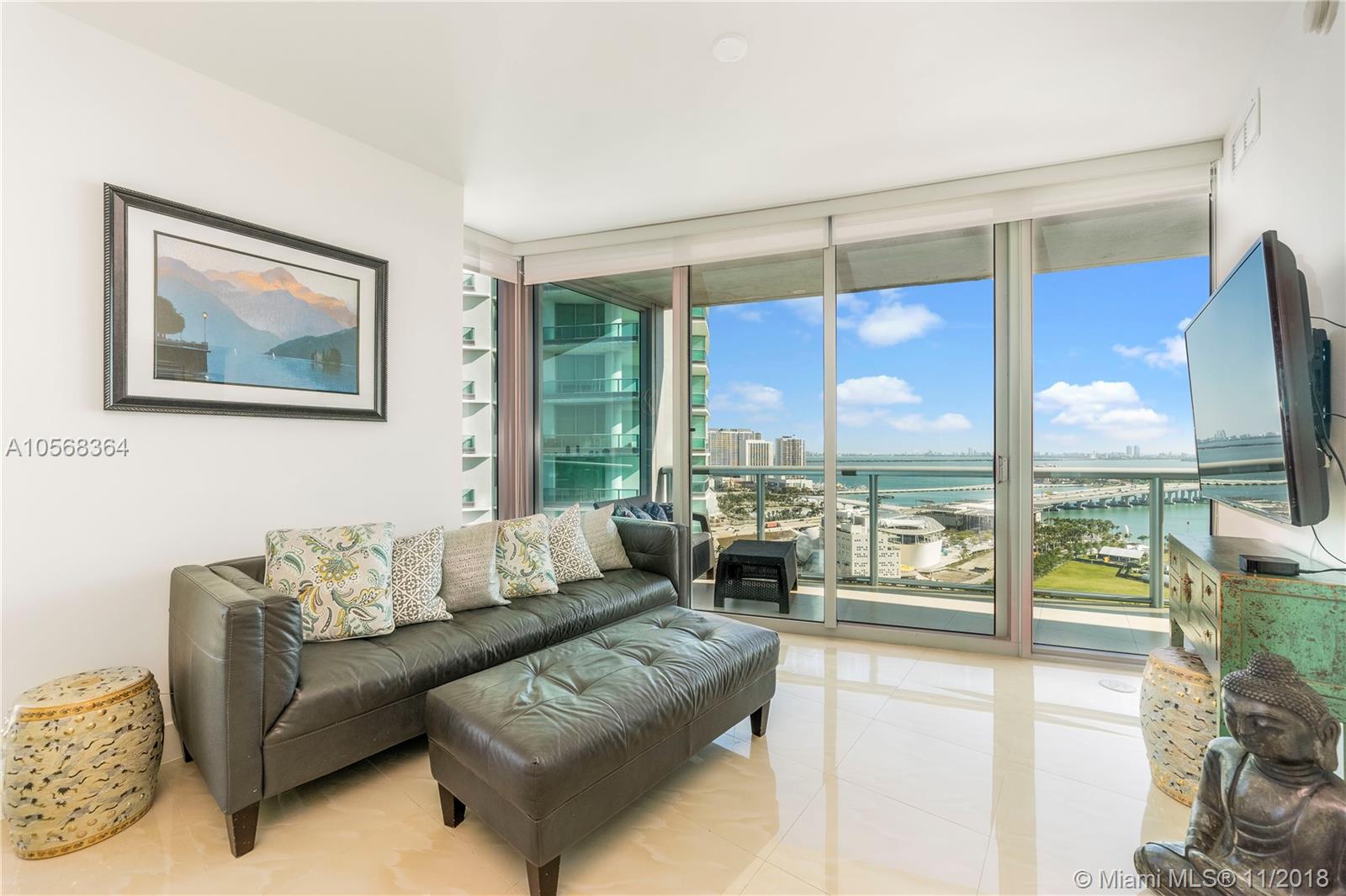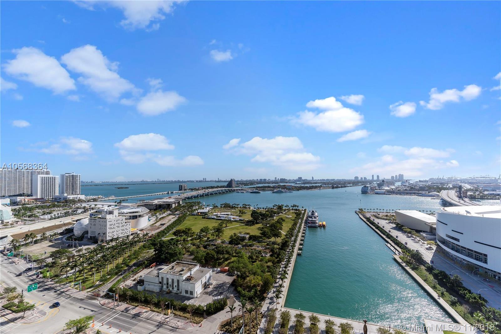 Spectacular Corner Unit at Marina Blue with 2 Parking Spaces plus 1 Storage Space. Features include flow through layout, custom tile floors, stainless steel appliances, washer/dryer, and custom master closet. Enjoy breathtaking bay, ocean & sunset views, plus luxe amenities including two pools, hot tub, fitness center, beach volley ball & more. 24-hour security. Live in the heart of Downtown Miami! Across the street from the American Airlines Arena, Adrienne Arsht Center, Perez Art Museum. 10min to SoBe, Brickell and Midtown.