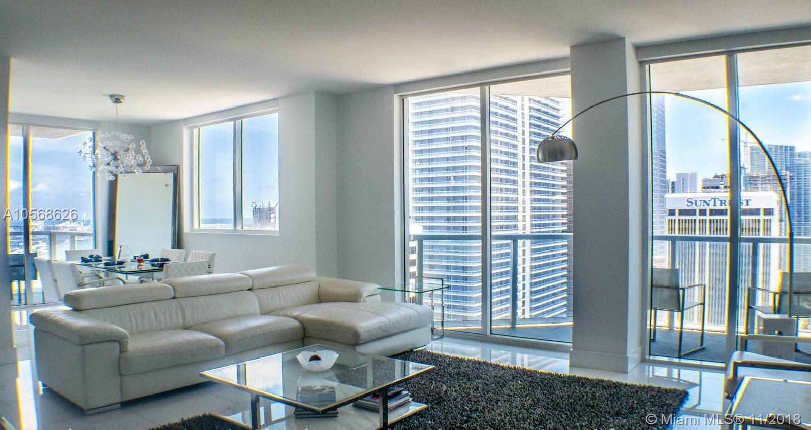Best deal in Downtown! Enjoy the sweeping bay and city views from this exquisitely upgraded luxury condo. Most desirable line in the building, corner unit with southeast views. Spacious 2/2 plus den comes with one assigned parking and a storage space. Elegant white porcelain floors throughout, upgraded kitchen and SS appliances, granite countertops, designer decor and $50K in upgraded fixtures. Class A building offers resort style amenities: 24/7 concierge, valet, four pools, 35,000 sf club house with fitness center, full-service spa, movie theatre, lounge and the business centre. Located in the heart of Downtown and the action – Arts & Museum Districts, Bayfront park and Bayside. Close to Brickell, South Beach, Design District and the airport. Could be sold with the furniture.