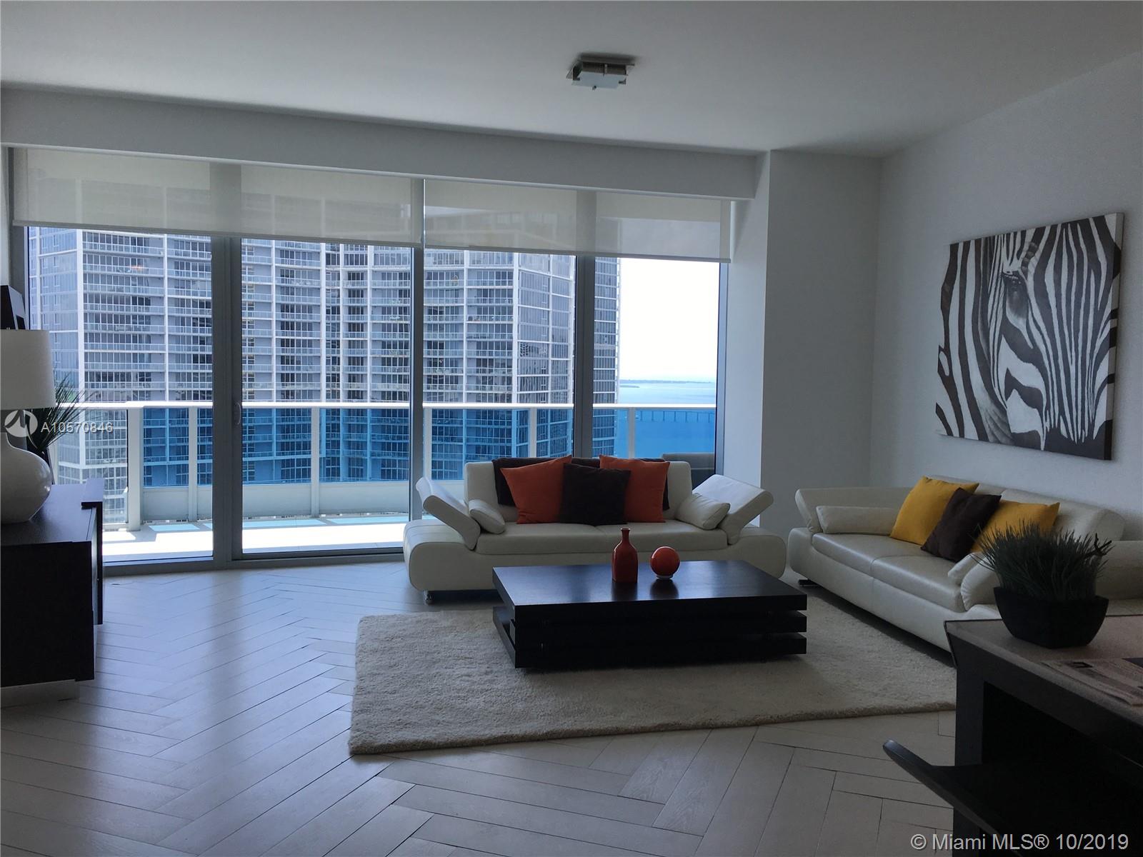 Best price for a lower Penthouse in Epic! Spectacular Lower Penthouse on 49th Floor. High ceiling with Breathtaking Views of Bay and Miami Skyline, 2 Bed/ 2.5 Bath plus Den. Fully turn-key, beautiful decorated. Unit is also for rent. Oversized Terrace, California closets, electric window treatments. 1 Parking space on 6th floor, plus valet parking and one assigned storage space. Epic amenities include; 24 hour room service, pool service and exhale Spa. Don't miss out on this desired 08 line.
