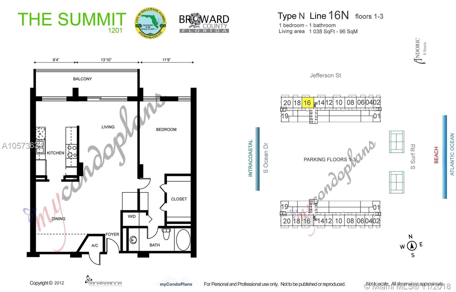 Large one bedroom, one bath on the first floor of an ocean-front building. Priced to sell - needs a little TLC -- Remodel your way! Investor opportunity, rent right away. Huge walk-in closet, washer/dryer in unit and deeded garage parking. Amenities include 2 heated swimming pools, 2 lighted tennis courts, fitness rooms, card, pool and game rooms plus a private restaurant. Premium cable, internet, wi-fi, and water included in maintenance. The Summit is situated on Hollywood Broadwalk, restaurants & entertainment. Tennant occupied until March.