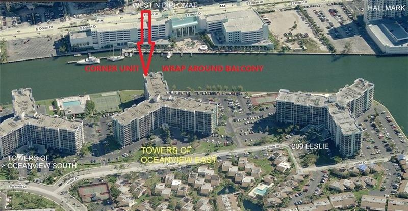 One of the largest units in the building, corner 2bd/2ba+DEN with Best Intercoastal Views in The Prestigious Towers of Oceanview in Hallandale. Wrap Around Balcony. Accordion shutters on all windows & glass doors. Tile throughout. The den can be converted to a 3rd bedroom. Washer and dryer in Unit. Huge walk in closet. Additional storage unit on same floor. Building has 24/7 security, tennis courts, heated pool, gym, bike room & more. Close to the beach, shopping, bars, restaurants, golf, Aventura, Hallandale and Hollywood Beach, Gulfstream Park, Mardi Gras Casinos, I-95, Ft Lauderdale Int. Airport. Service pets ok. NO LEASING FIRST 2 YEARS**Min 25% down if financing. Unit needs TLC.